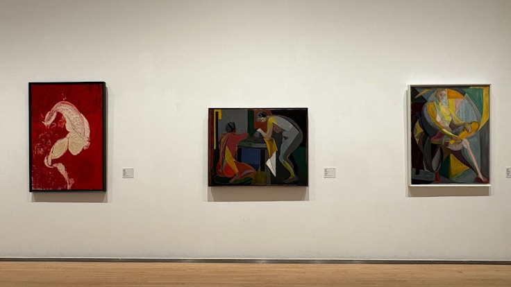 その向かい側で紹介されるのは、毛利眞美。半抽象的な作品を制作したのち、より抽象的な作風へと展開していく。芥川同様人体を描いているが、作家によってその表現方法は大きく異なることが、比較することで見えてくる。