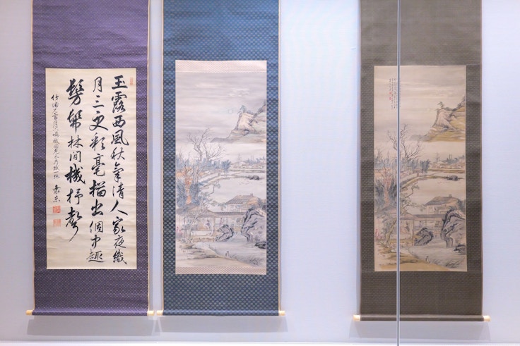 とくに注目したいのは、文人画家・渡辺崋山の名幅《月下鳴機図》(19世紀前半、江戸時代)と、それを小彌太が丁寧に摸写し、松方正義が詩を添え双幅とした作品を紹介。小彌太の画の才覚が垣間見える一品だ。ほかにも崋山の名画の数々が一堂にそろうのも圧巻といえるだろう。