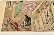「源氏物語絵巻」とは、紫式部が著した『源氏物語』を文章(詞書)と絵で表した五十四帖からなる巻物のこと。四代の天皇に渡る約70年の物語で、その登場人物は500人近くにのぼる。
