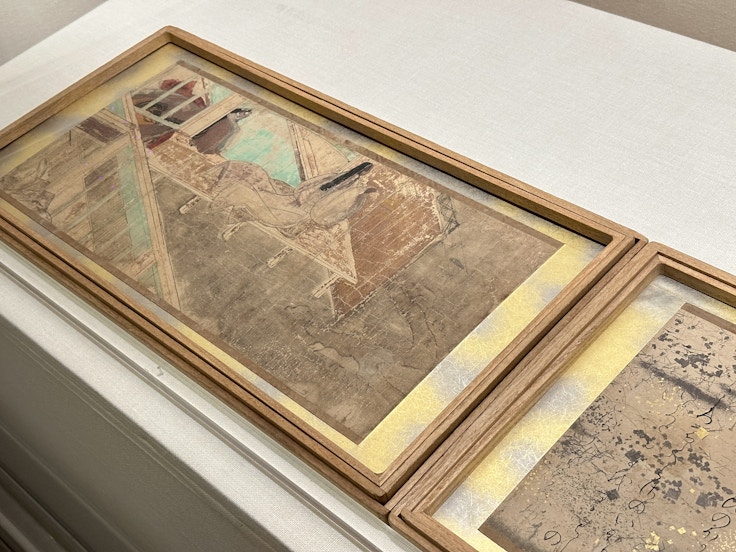 本展では、徳川美術館所蔵のものだけでなく、五島美術館、書芸文化院、そして個人のものを含む巻子装(かんすそう)、額装、断簡によって、10年ぶりに、国宝「源氏物語絵巻」が一挙に展覧。とくに徳川本は平成24年から令和元年にかけての修理によって額装から巻子装となっており、それらが一斉に公開されるのはこれが初めて。つまり、巻子装(徳川本)と額装(五島本)という異なる姿の国宝を同時に鑑賞できる機会となっている。