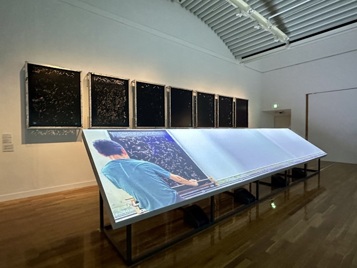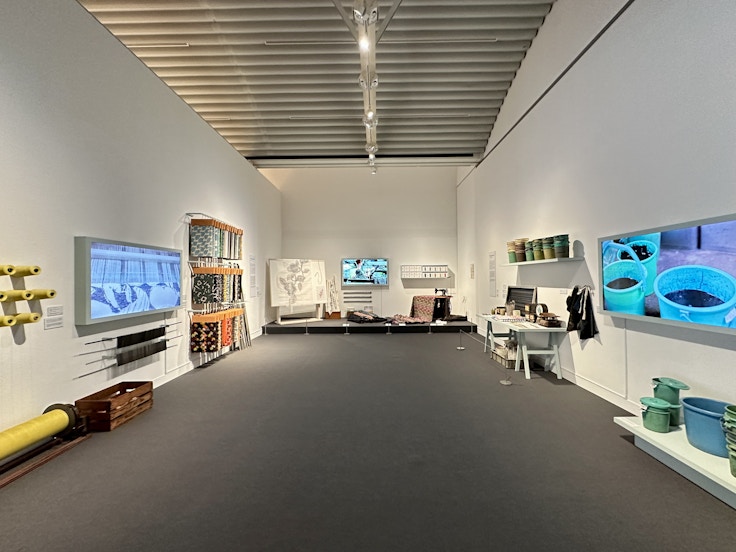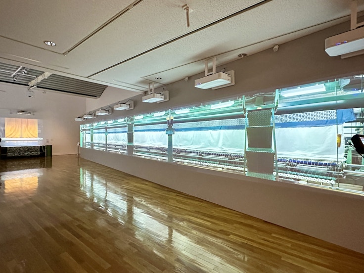 「score」でそれぞれのデザインに込められた思いを確かめた後に待ち受けるのは「ensemble」。実際の製造過程を、道具・映像で詳しく紹介するパートだ。ここでは刺繍、プリント、織というミナ ペルホネンのプロダクトを生み出すのに欠かせない3つの技術にフォーカス。デザイナーと職人たちの緻密なコミュニケーションによって、ミナのプロダクトが私たちのもとに届くのだということが強く実感できるだろう。映像を駆使することで、よりその技術を間近に体感することが可能となっている。