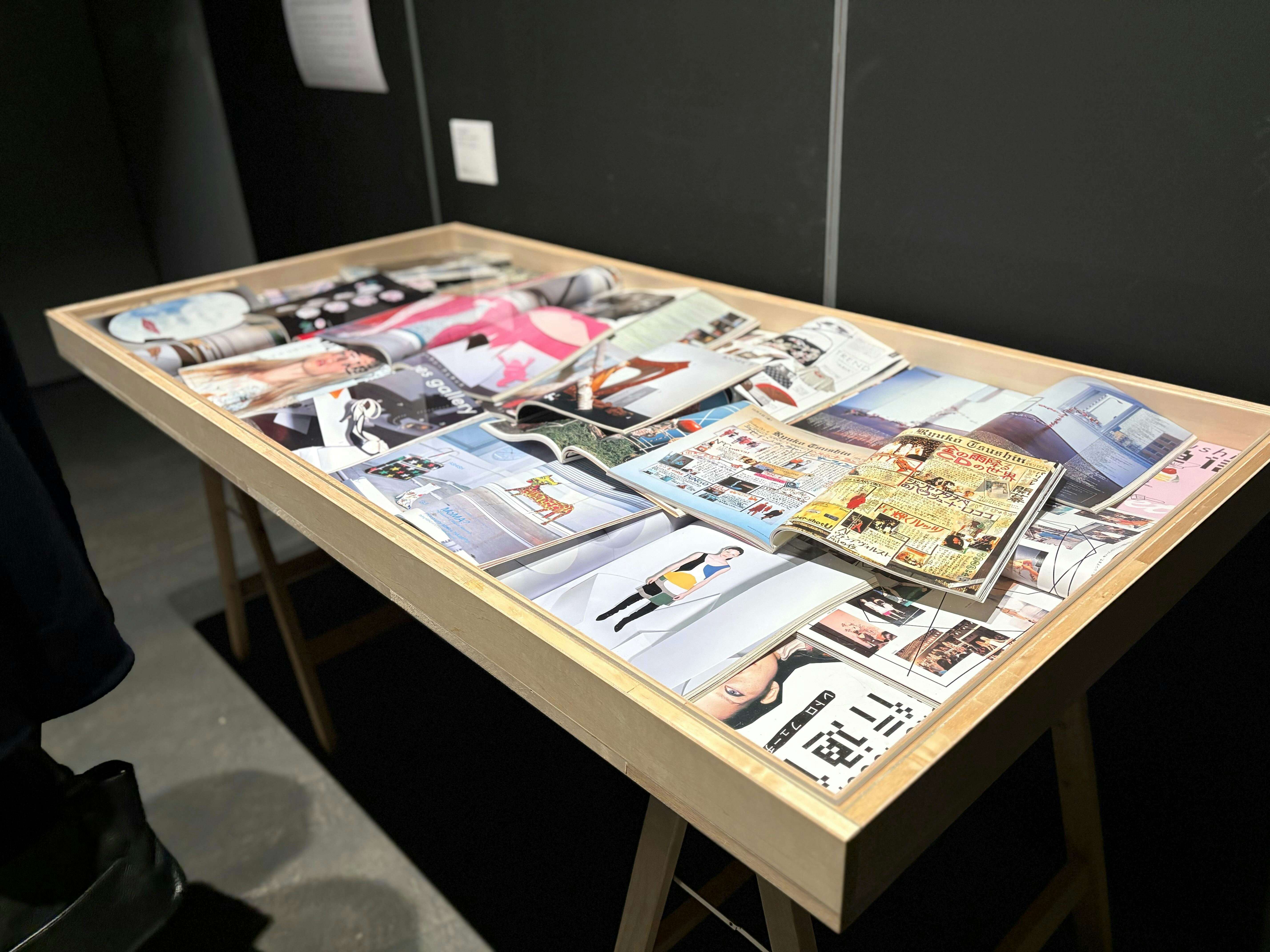 今回この壁紙を手がけたのは、グラフィックデザイナーの服部一成だ。コラボレーターという立場で、ともに杉戸と本展をつくりあげた服部は、同館のロゴマークなどを手がけている。もとより同館と関係があった服部だが、今回のコラボレーションは、杉戸自らの呼びかけによって実現した。杉戸は、服部がアートディレクション(2002〜04年)を手がけたファッション雑誌『流行通信』にとても影響を受けており、今回の企画が持ち上がった当初から、『流行通信』が本展のキーワードのひとつとして挙がっていたという。