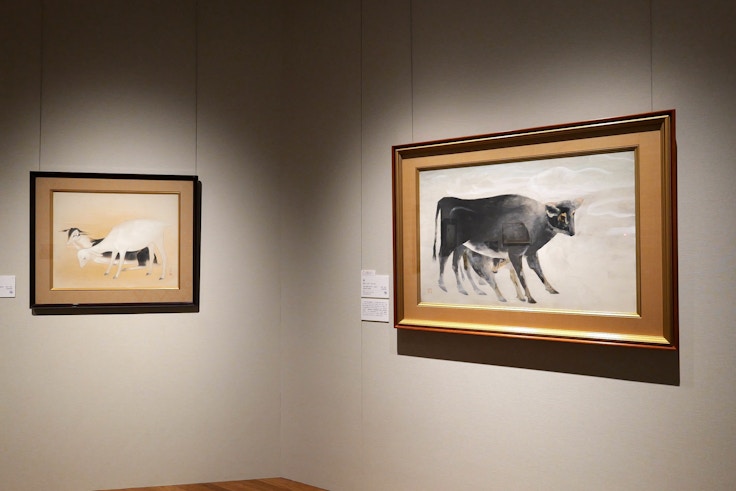 いっぽうの土牛は、動物をはじめとした題材をやさしいまなざしで描いたことで、いまも広く人気を集めている。家族愛を感じられる鹿の親子を愛らしく描いた《鹿》(1968、昭和43)や、誕生後すぐの子牛の姿に生命の瑞々しさを見出した《犢(こうし)》(1984、昭和59)、凛々しさのなかにどこか愛嬌がある顔が微笑ましい《シャム猫》(1974、昭和49年)など、そのバリエーションは豊かだ。