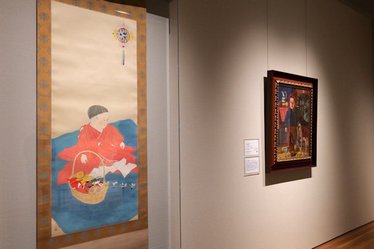 清方と土牛以外にも、多彩な作品が同館コレクションから選ばれ展示されている。晴れ着を身にまとったあどけない長女の姿を描いた小茂田青樹の《少女坐像》(1931、昭和6)や、同館では珍しい洋画作品である小出楢重《子供立像》(1923、大正12)といった子供を描いた作品は、いまも普遍的な「LOVE」のかたちを体現しているといえる。