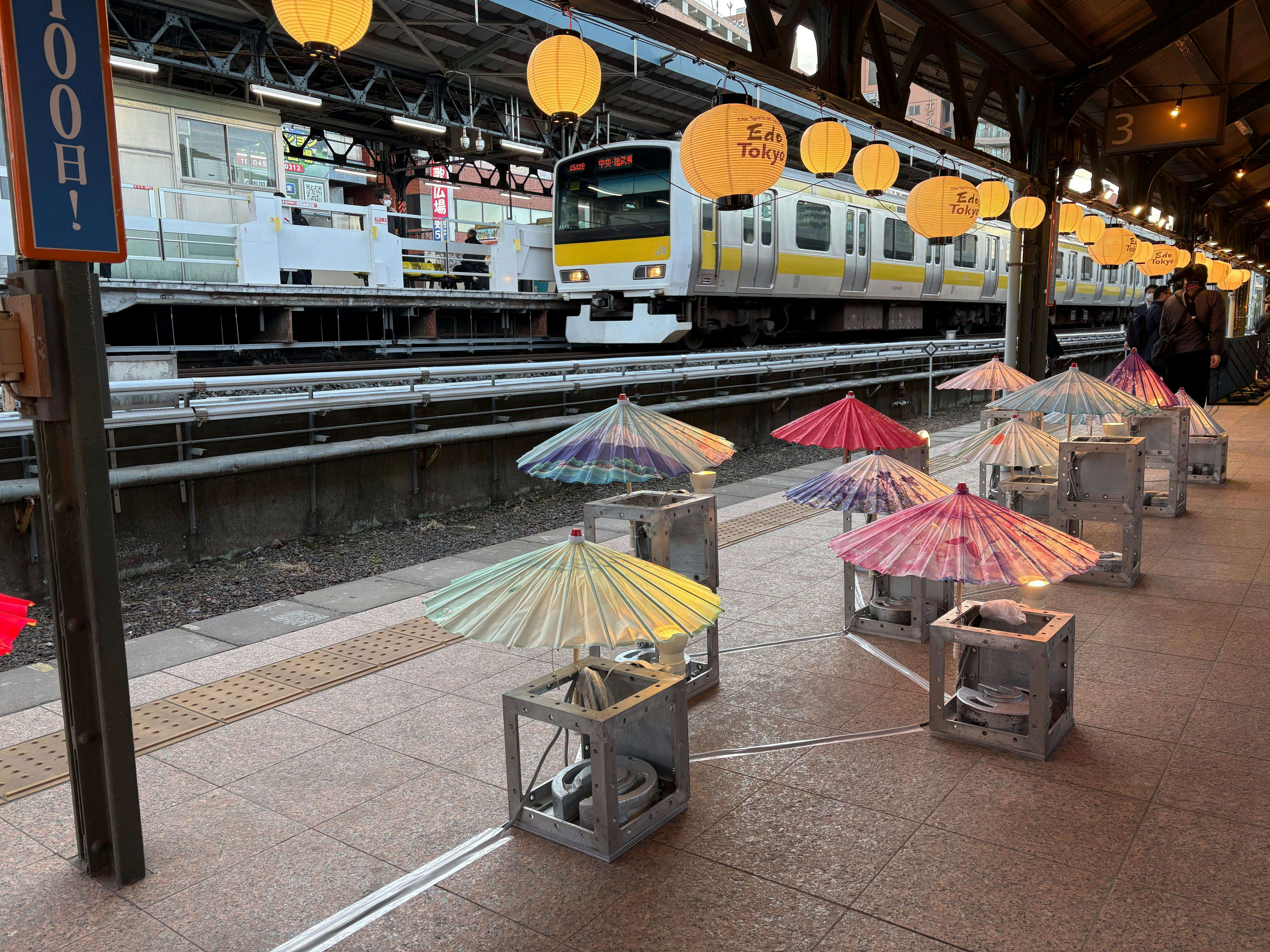JR両国駅からのアプローチ部分には、新たに「鳥居」を想起させるモニュメントが設置される。もとからある大階段に負けないインパクトを持たせ、入り口をわかりやすくする工夫がなされている。内側にはLEDパネルが付けられており、人々が館内に入っていく映像などが投影される予定だ(閉館間際の時間には、館外へ向かって歩く人の姿が映される予定)。都営大江戸線の両国駅側には、同館のロゴマークをあしらったオブジェが設置される。