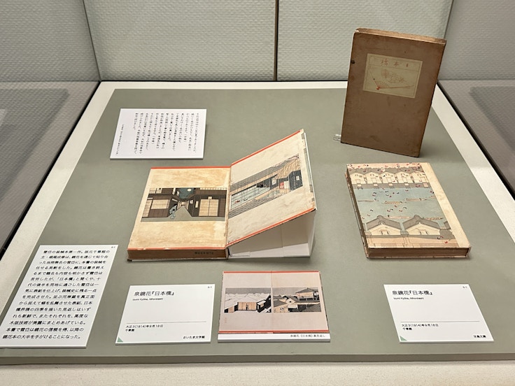 雪岱を語るうえで欠かせない存在である泉鏡花。大正3(1914)年9月、雪岱が初めて本の装幀を手がけたのが、鏡花の『日本橋』だった。日本橋の河岸と、そこを舞う無数の蝶々という構図は鏡花を満足させ、以降、雪岱は鏡花本の大半を手がけることとなる。2章では、雪岱が装幀した鏡花本の数々が並ぶ。
