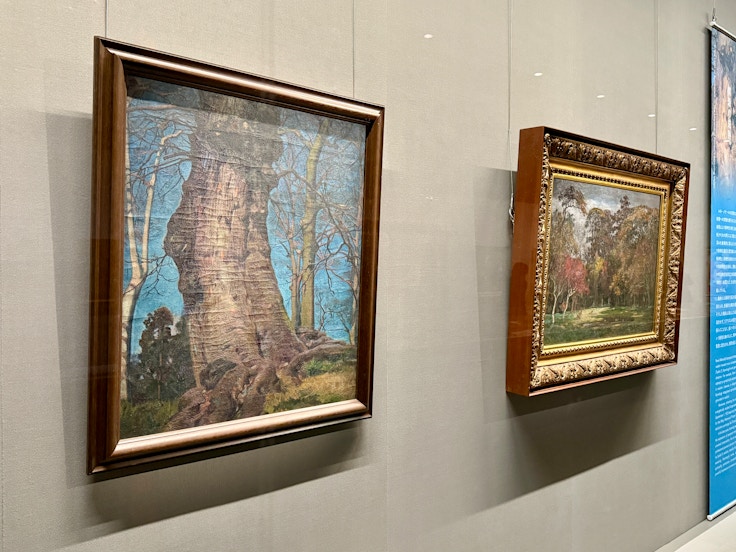 《木の幹》は、写実的な描写を保ちながらも、青空との対比によって一本の幹の存在感を際立たせ、対象の本質に迫ろうとする試みが見て取れる作品である。また、本展のキービジュアルとなっている《婦人像》では、人物のみならず背景となる室内の描写も丁寧に描き込まれ、たんなる肖像画を超えて、女性の内面や当時の生活様式を想起させる。