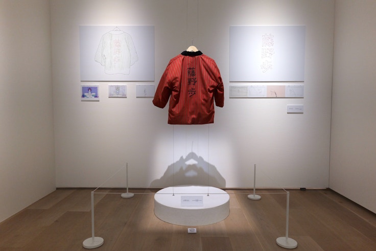 5「藤野の部屋」は藤野の部屋を再現した展示だ。藤野と京本が互いにマンガを描くことに邁進した場所であり、隣に展示されているの京本が羽織り続けた藤野のサイン入りの半纏とともに互いの友情を体感できる。