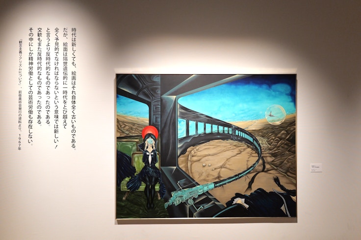 「セーラー服」も「蒸気機関車」も、中村が模索した観念的な記号ではあるものの、いずれもモチーフとしては誰もが具体的なイメージを共有できる普遍性があり、また通俗的なフェティッシュさも兼ね備えている。だからこそ中村は、誰もが知るからこそ鑑賞者それぞれの記憶や視点にもとづいた多様な読みを引き出す記号として重用した。このように、絵画を通して鑑賞者の覚醒をうながすかのような中村の制作姿勢は、本展でこれまで見てきた政治運動と芸術とのせめぎあいによって生まれたものといえるだろう。