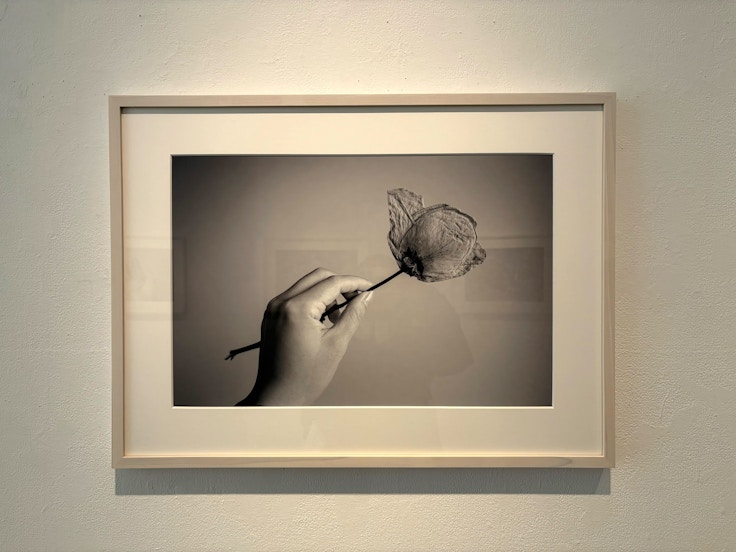 「緑の部屋」から一変して、明るい照明の部屋で展覧されるカラープリントの「緑の日々」。本シリーズは、ホテルの一室にあるビールの空き缶に生けられた白い薔薇の写真からはじまる。じつはこの薔薇は、「緑の部屋」シリーズの「花売りのおばあさん」で登場したものと同一のものだ。シリーズごとにカーテンで会場がわけられていながら、シリーズ間に確かな連続性を感じさせるような構成である。