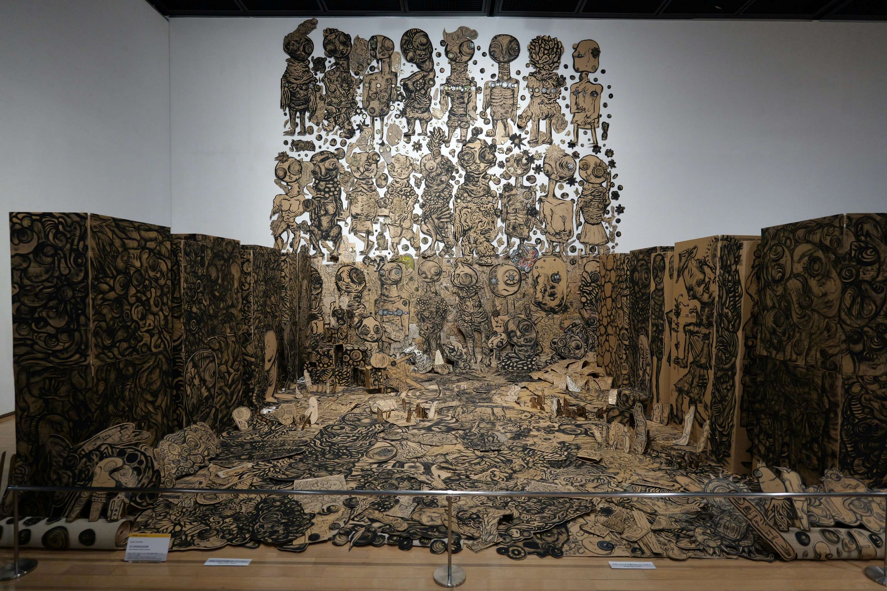 そのなかから、岡本太郎賞を受賞したのは高田哲男、岡本敏子賞を受賞したのは馬場敬一だ。審査員は例年通りの椹木野衣、山下裕二、和多利浩一、平野暁臣、土方明司の5名、またゲスト審査員として現代美術家・福田美蘭が加わった。高田には賞金200万円が、馬場には100万円が贈られた。