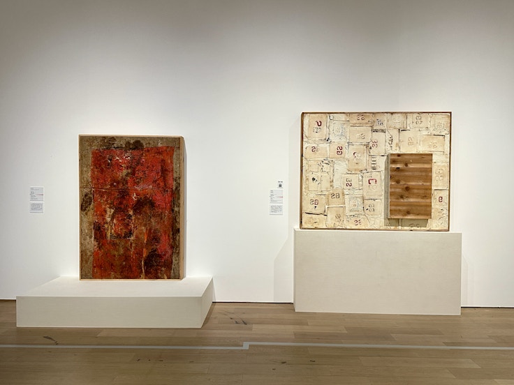 楠田信吾の《オカサレタ・タブー》(1960)は、画面をえぐるように傷つけ、絵画を物質として露呈させる作品だ。また榊健の《Opus.63-4》(1963)は、白いキャンバス自体を湾曲させ、ミニマルな造形のなかに強い立体性を孕ませている。「より純粋な絵画」を追求した果てに、日本画はもはや絵画という枠組みすら問い直す地点へと至っていたことがわかる。