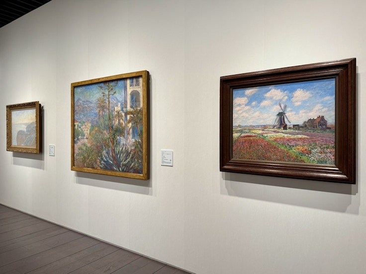 また、オランダを訪れた際に制作された《オランダのチューリップ畑》(1886)では、光の反射や鮮やかな色彩が、土地特有の雰囲気と結びつき、風景体験そのものを強く印象づけている。