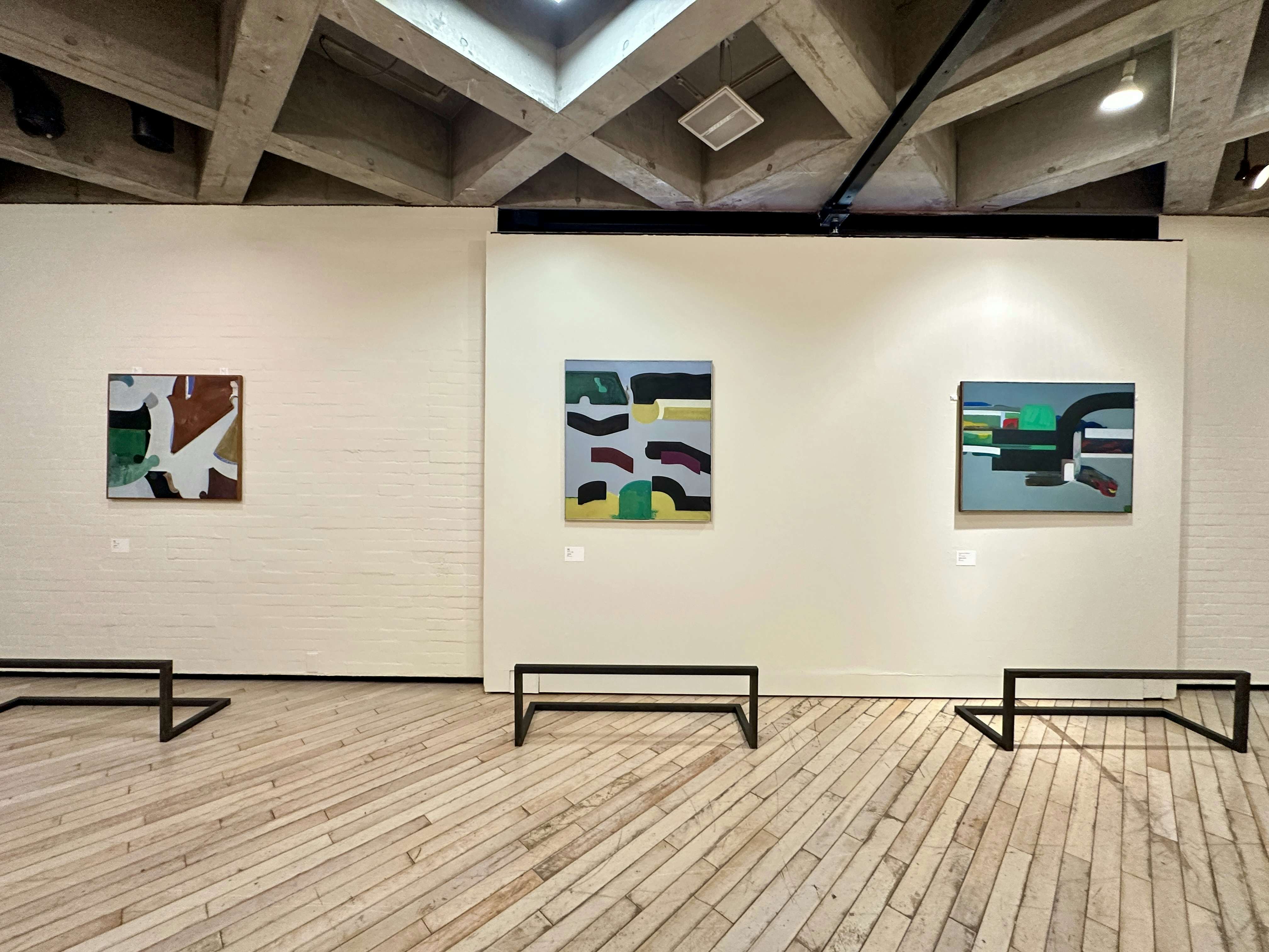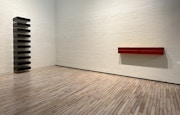 まず2階で目を引くのは、50年代の絵画作品群だ。一部日本初公開となるこれらの初期作からは、抽象表現主義の影響下にあったジャッドが、いかにして独自の造形言語を獲得したかが伺える。55年の作品には残る具象的なモチーフが、56年以降、抽象へと変化していく過程はじつに興味深い。
