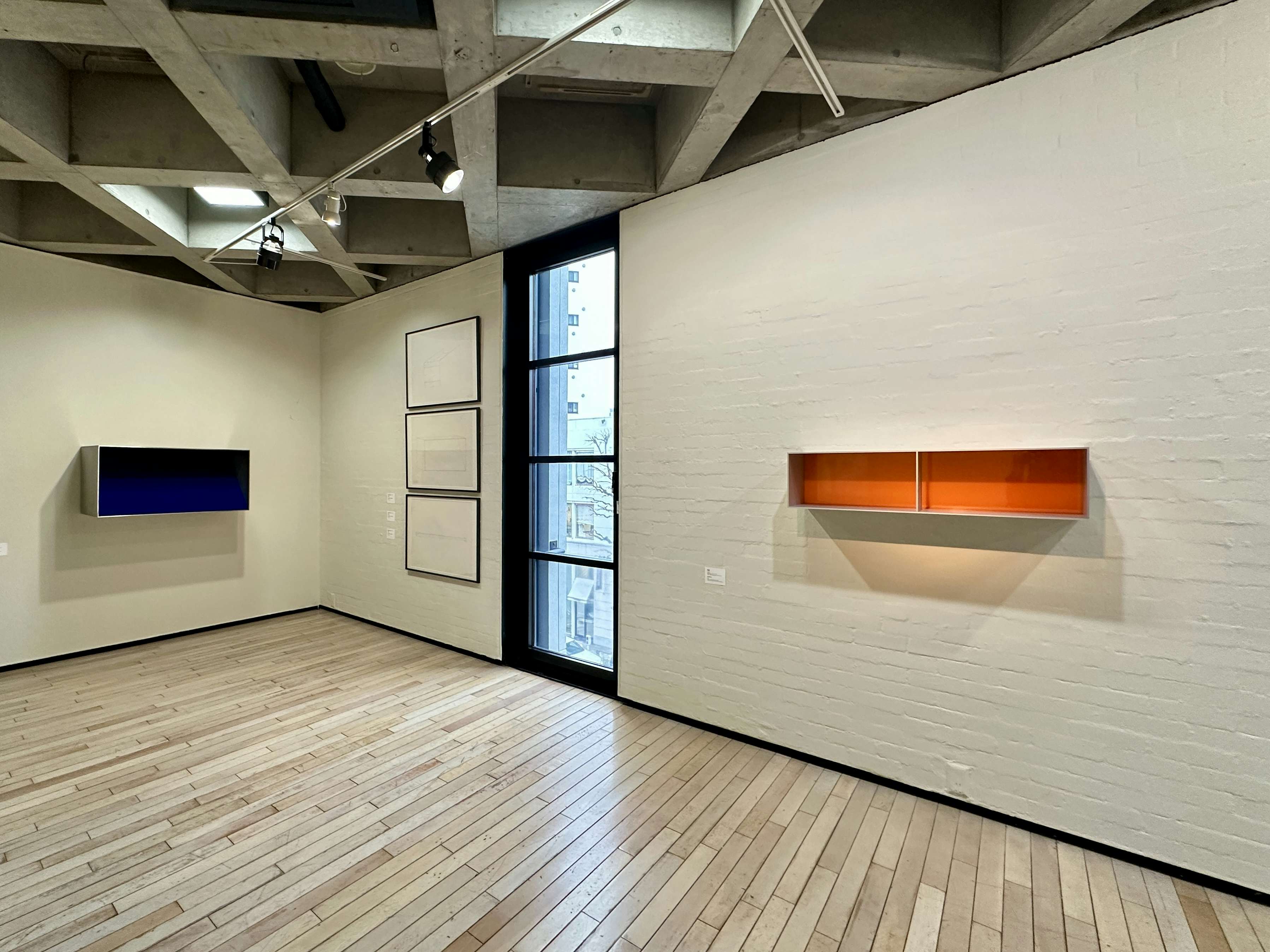 同フロアでは、アルミニウムやプレキシグラスを用いた代名詞的な立体作品も併設。2次元の平面における探求が、いかにして3次元の物理的実体へと移行していったのか。その変遷を1つの空間で一望できる構成は、本展の大きな見どころだ。