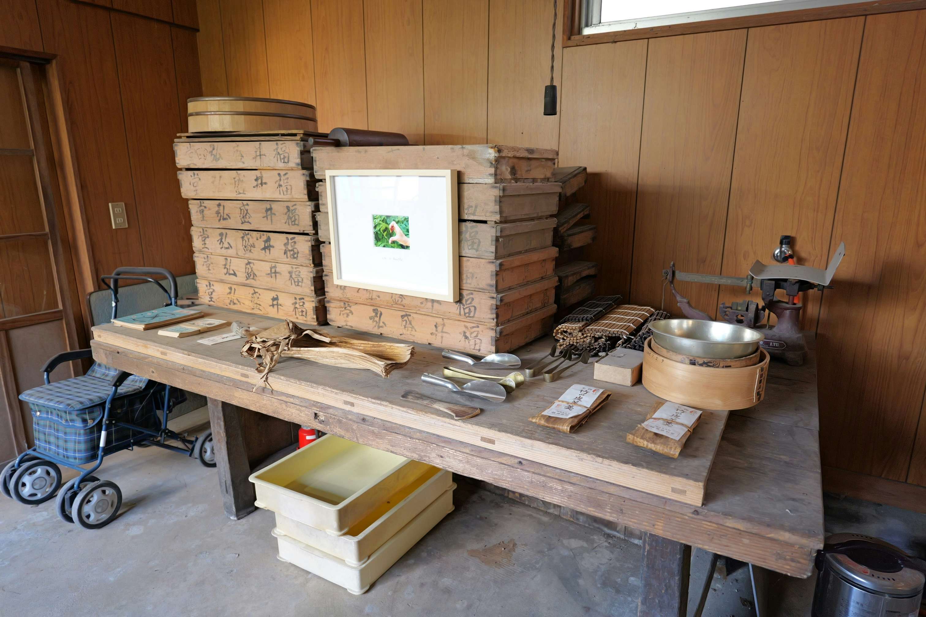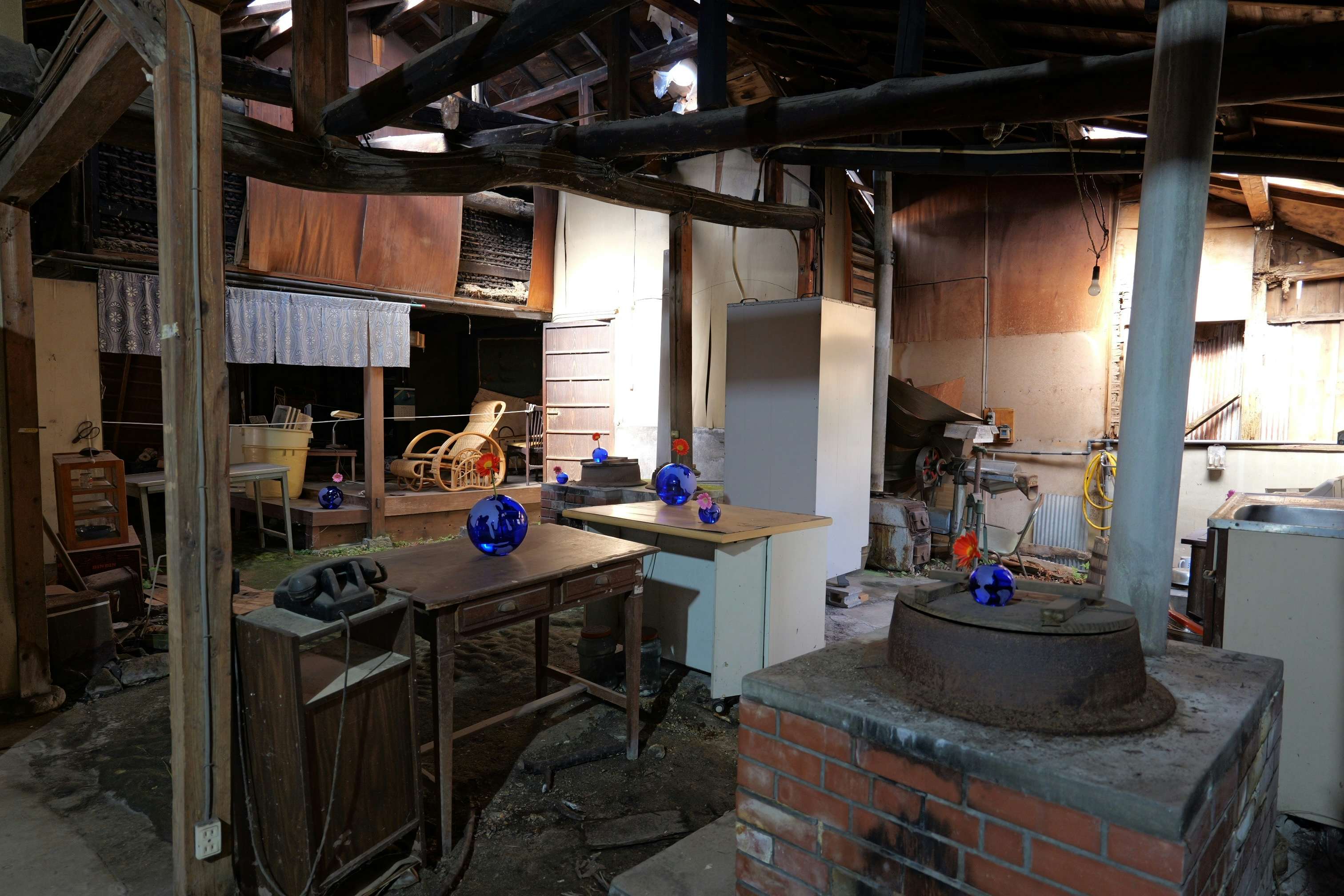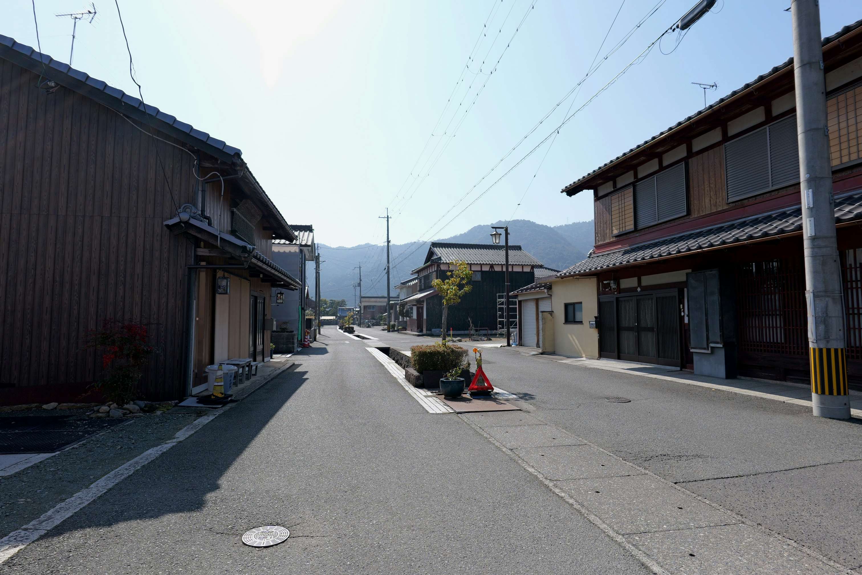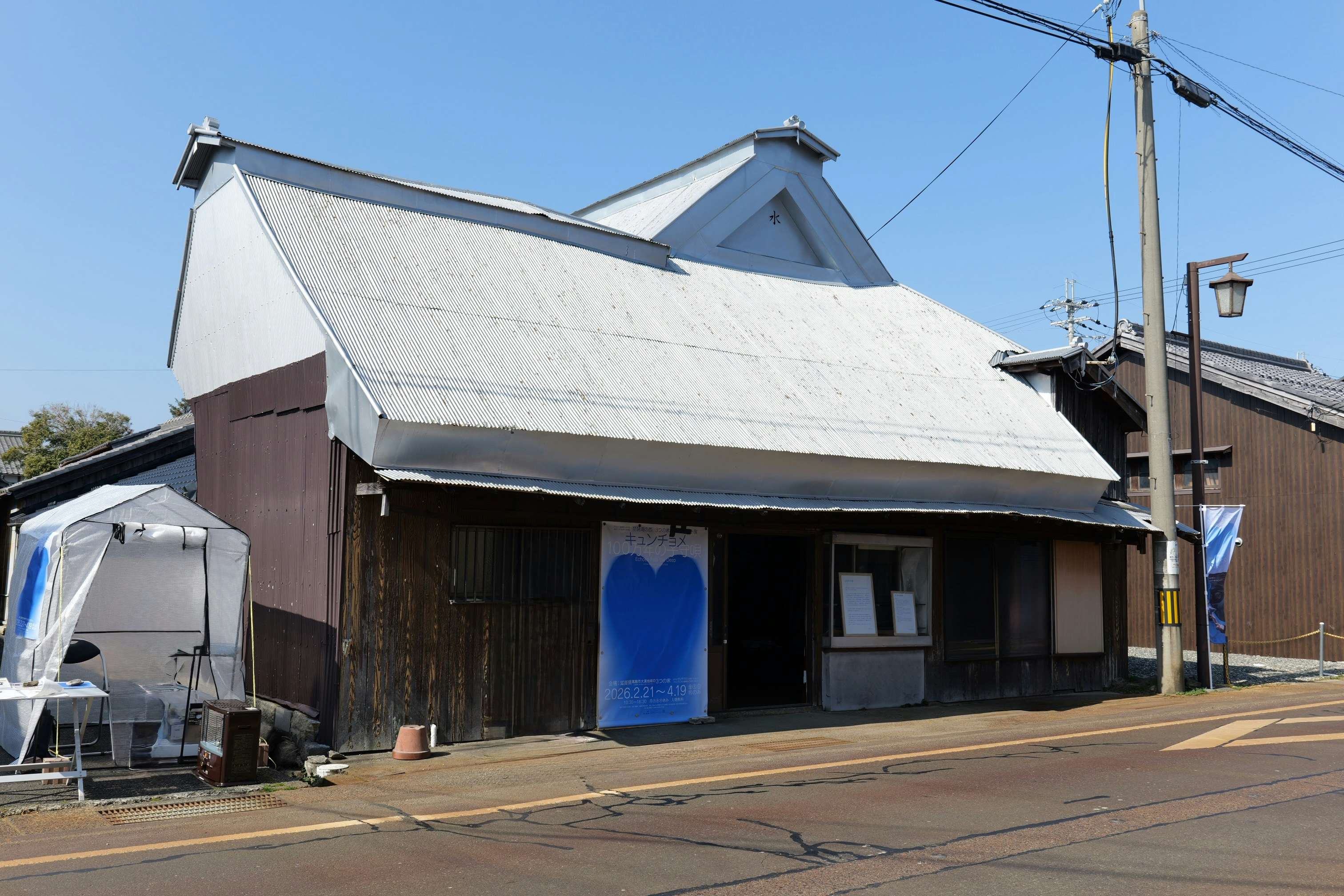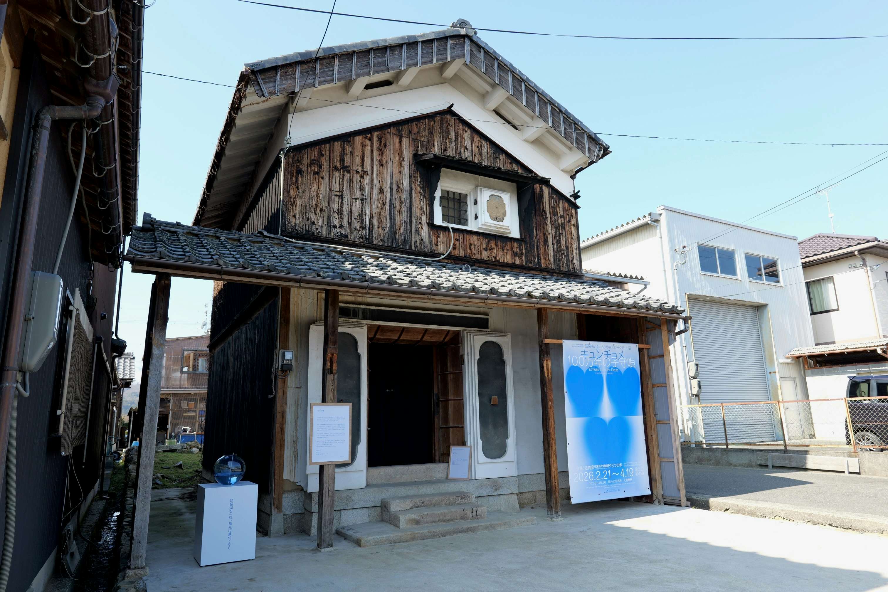 高島市は、琵琶湖の西岸にあり、JR京都駅から湖西線で1時間ほど。今回会場となった大溝は市の南部に位置する、戦国自体に織田信長の甥・織田信澄によって築かれた城下町だ。古くから水路や内湖を利用したまちづくりが行われており、歴史ある街並みが残る。本展はこの街中にある旧福井盛弘堂、中田家住宅旧米蔵、林家住宅旧米蔵の3会場で行われている。