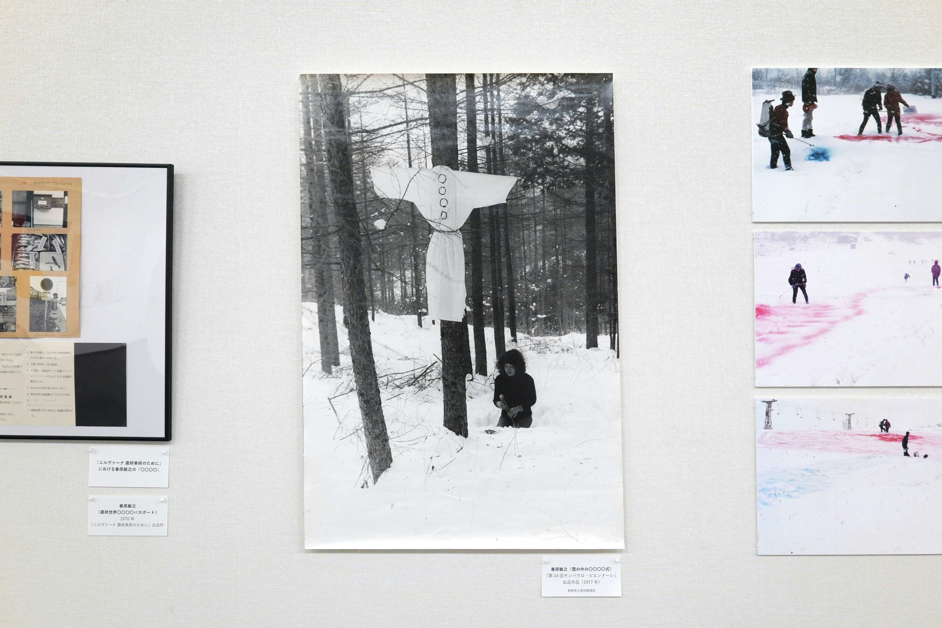 本展の展示構成は、展示室の外枠を当時集団で行われていた集団のパフォーマンス資料、内枠をそこに参加していた各作家の紹介というかたちでまとめられていることが特徴だ。こうした発表と作家を分ける展示方法は、「かみ派」の芸術がつねに流動的であり、企画ごとに様々な作家が入り乱れていたことを端的に表しているといえる。