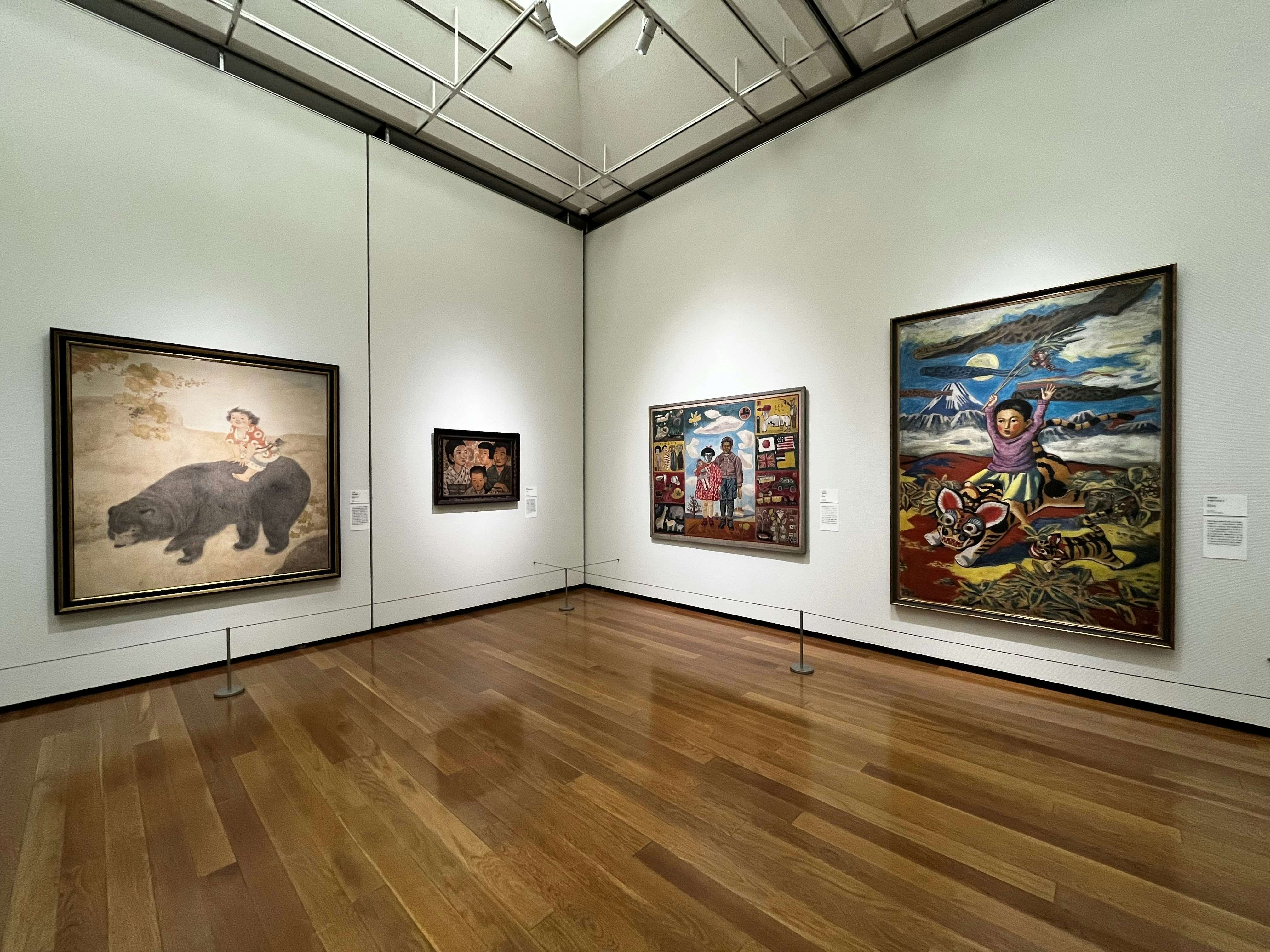 展示は、本格的な戦争に入る1930年代から敗戦後の1940年代後半まで、時系列に沿った全5章で構成される。第1章「童心の表象」では、大正時代の自由主義的な空気の影響を受けた、無邪気な子供たちのイメージを追う。ここでは絵画作品から、街頭で子供たちを夢中にさせた紙芝居までが紹介され、当時の子供観の変遷をたどることができる。