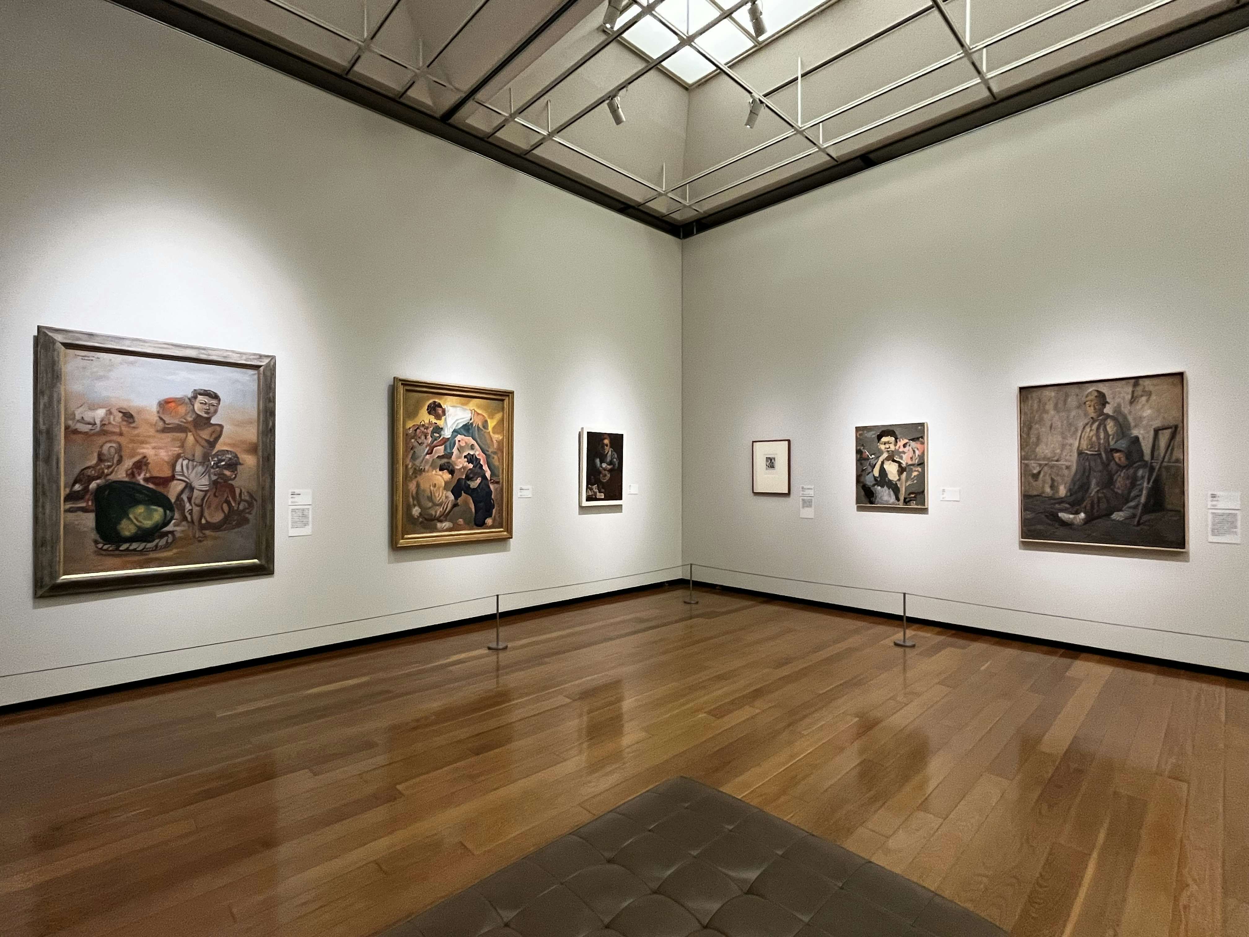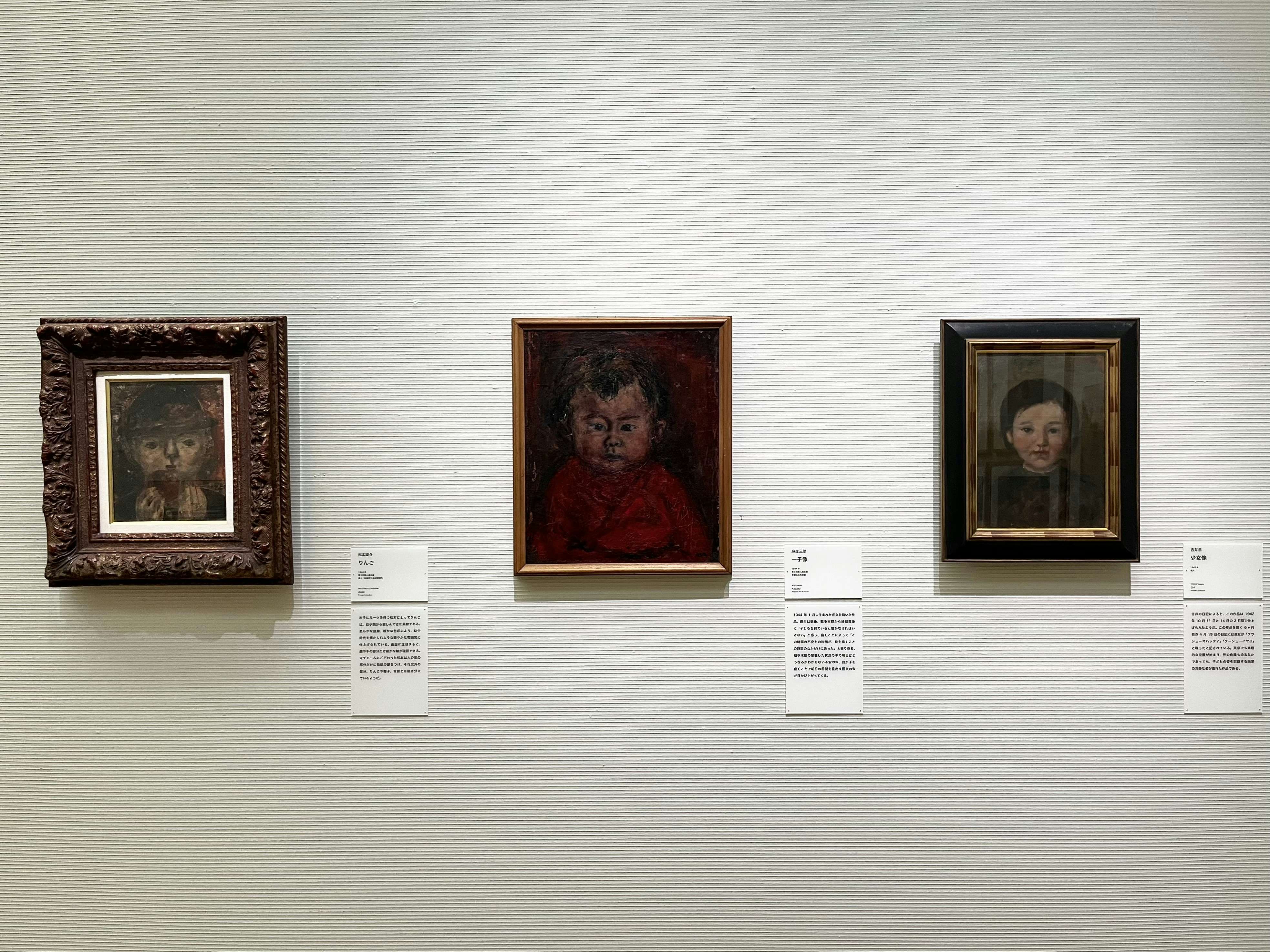 興味深いのは、軍国主義のもとでシュルレアリスムや抽象表現が検閲対象となっていた時代に、具体美術協会の創設者・吉原治良がその作風を抽象から具象へと変化させていったことがわかる作品も展示されている点だ。また、長野県上田市の「無言館」から借用された作品も出展されており、将来有望でありながら若くして戦地で散った作家たちの存在も感じ取れる。