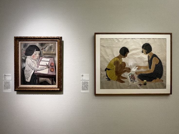 北川民次《作文を書く少女(慰問文を書く少女)》(1939)は、少女が戦地の兵士に送る慰問文を書く姿を描いているが、その表情は晴れず、手元の紙は白紙のままだ。子供の日常を描きながらも、北川がそこに忍ばせた反戦のメッセージが読み取れる。