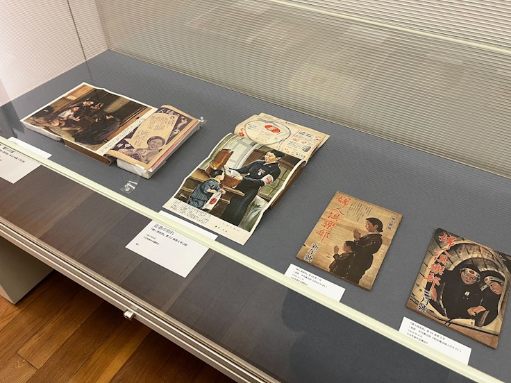 また、会場には当時の教科書も展示されている。これらは1945年の敗戦後、GHQの指導により軍国主義的な記述が黒塗りにされた。