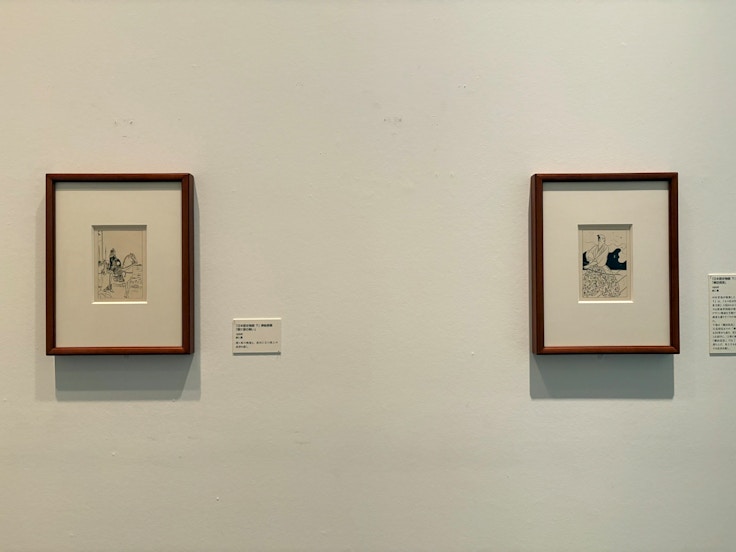 また会場では、鉛筆による素描も並んでいる。奈良旅行で現地の仏像をスケッチしたものと、泉鏡花の小説『高野聖』を題材にした、渓流を背にする裸婦を描いた作品の下絵だ。