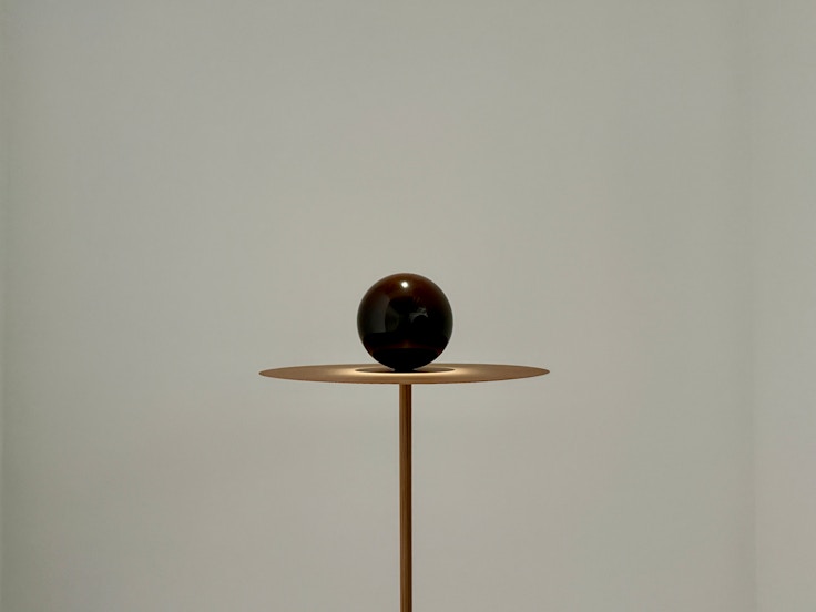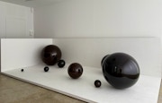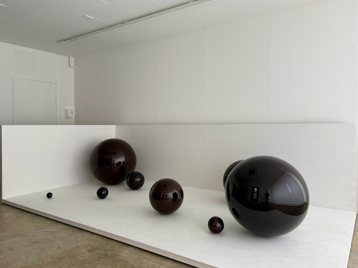 更谷にとって日本で初となる本展では、大小様々な漆の球体作品が展示されている。ギャラリー1階では、直径約2メートルの漆による球体作品を中心に展示。3階では、直径7センチから72センチまで、黒と赤の2種類の漆の球体を組み合わせたインスタレーションが展開されている。