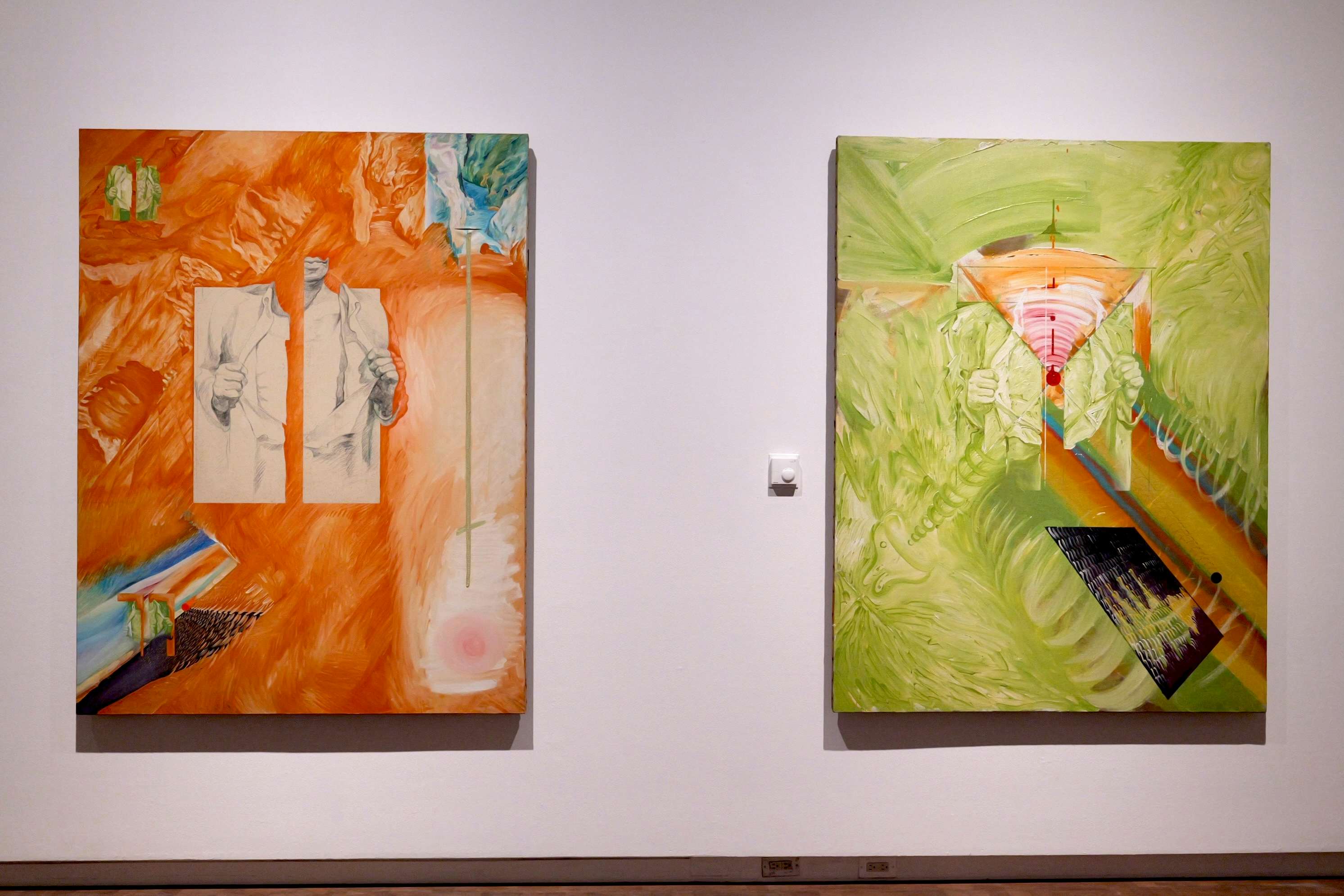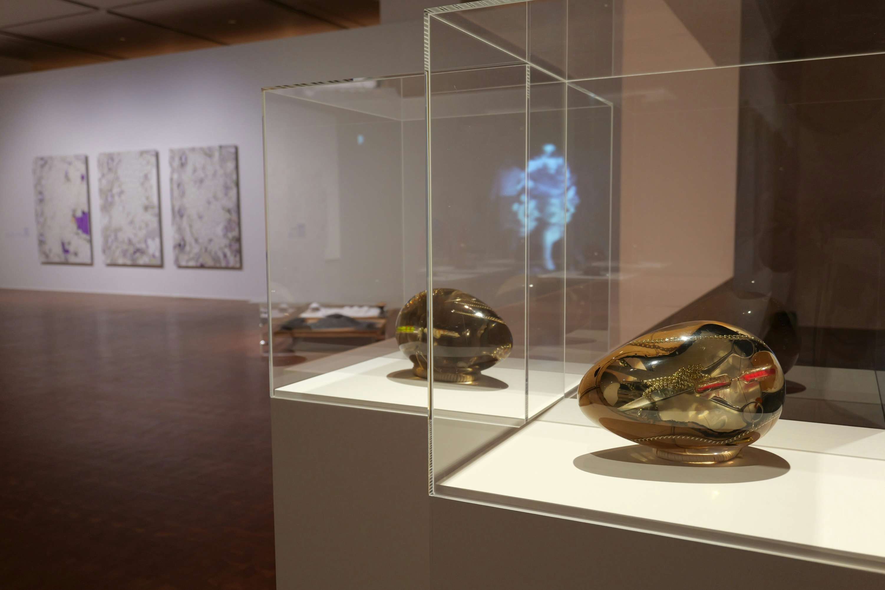 福元は本展を手がけるにあたり、中西の絵画の全体像を貫いているものを「不安定」というキーワードでとらえたという。中西が多用する色彩の持つ両義性、曲線を多用した卵型の転がってしまう立体、後期の絵画における光や時間といった曖昧な主題などにそれらが見出だせるという。なお、こうした不安定性については、茨城県近代美術館主任学芸員の永松左知も本展の図録に寄せた「中西夏之の絵を見つづけるために」(P.8-11頁)において、南雄介、宇野邦一、林道郎らの議論を参考しつつ言及している。本展ではこの「不安定」というテーマを念頭に、中西が絵画と対峙しながら探求したことを探ってみるのもいいだろう。