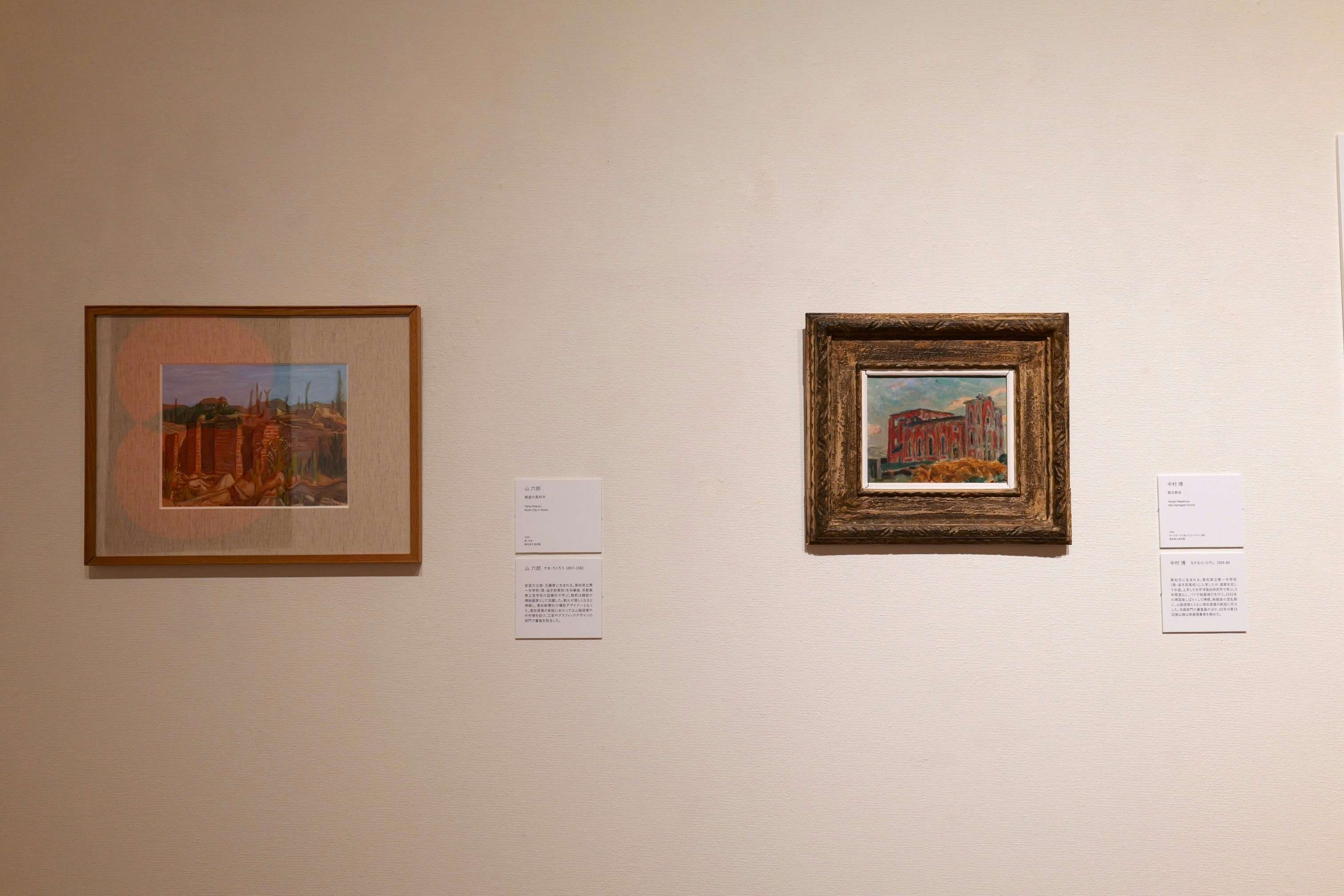 展覧会はプロローグと7章で構成。高知の市街地は、45年7月の米軍による大規模空襲、そして46年12月の昭和南海地震で大きな被害を受けた。プロローグではこうした歴史が、山六郎と中村博のふたりの地元の洋画家の作品とともに紹介される。この街が急速な復興を遂げるなか、中村と山脇信徳のふたり、そして高知新聞社によって立ち上がったのが「高知県展」だった。
