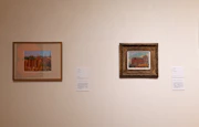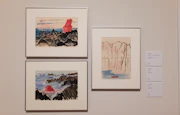帰郷後の高﨑は、彫刻よりも絵画に関心を寄せるようになる。フィンセント・ファン・ゴッホやピエト・モンドリアンからの影響を受けつつ、やがて抽象表現へと向かい、それを「高知モダンアート研究会」などを組織することで普及させようとする。会場で見られる《かかし(A)》(1958)や《朱と緑》(1959)といった作品は、当時の高﨑の抽象絵画への意識をうかがうことができる。