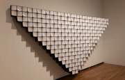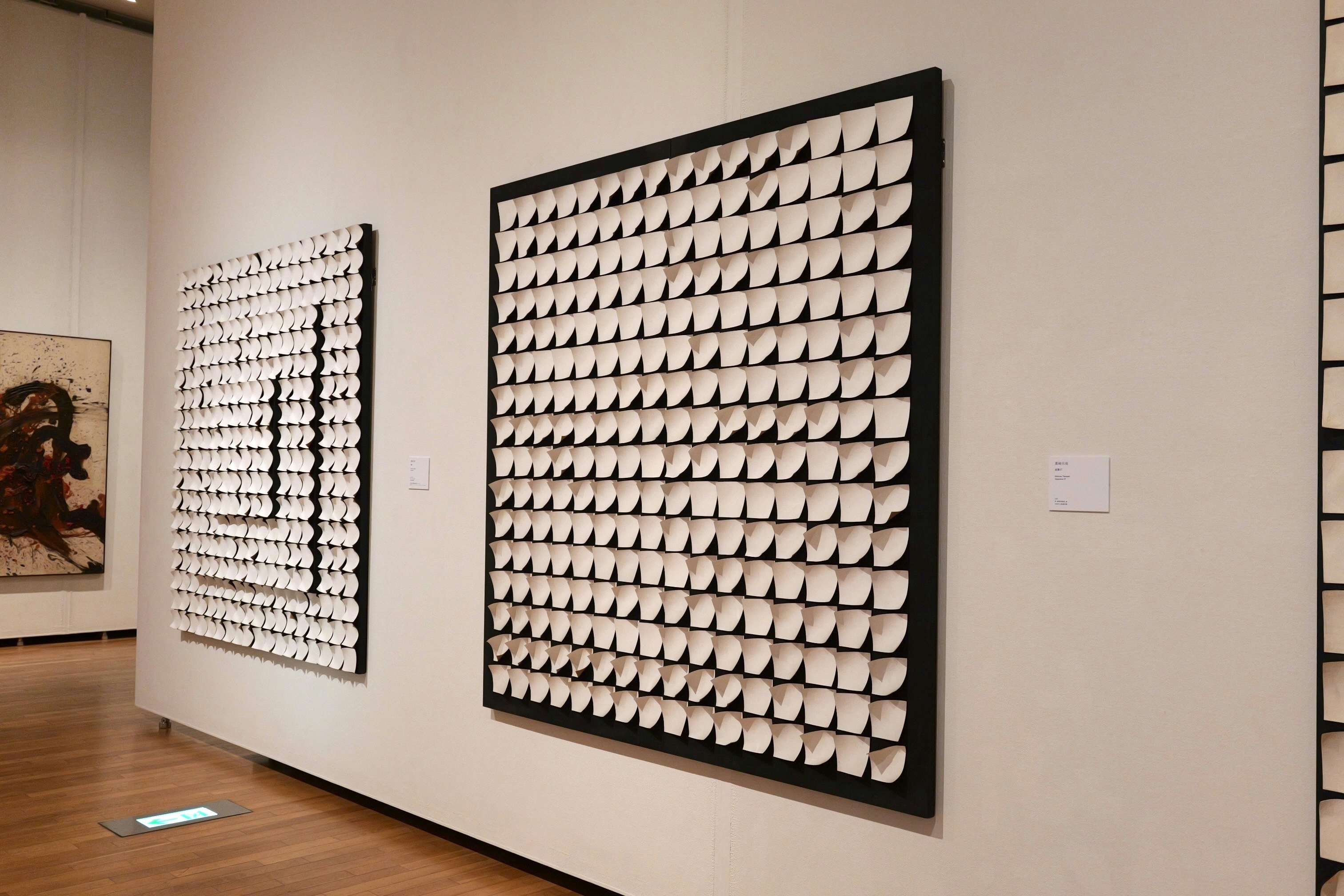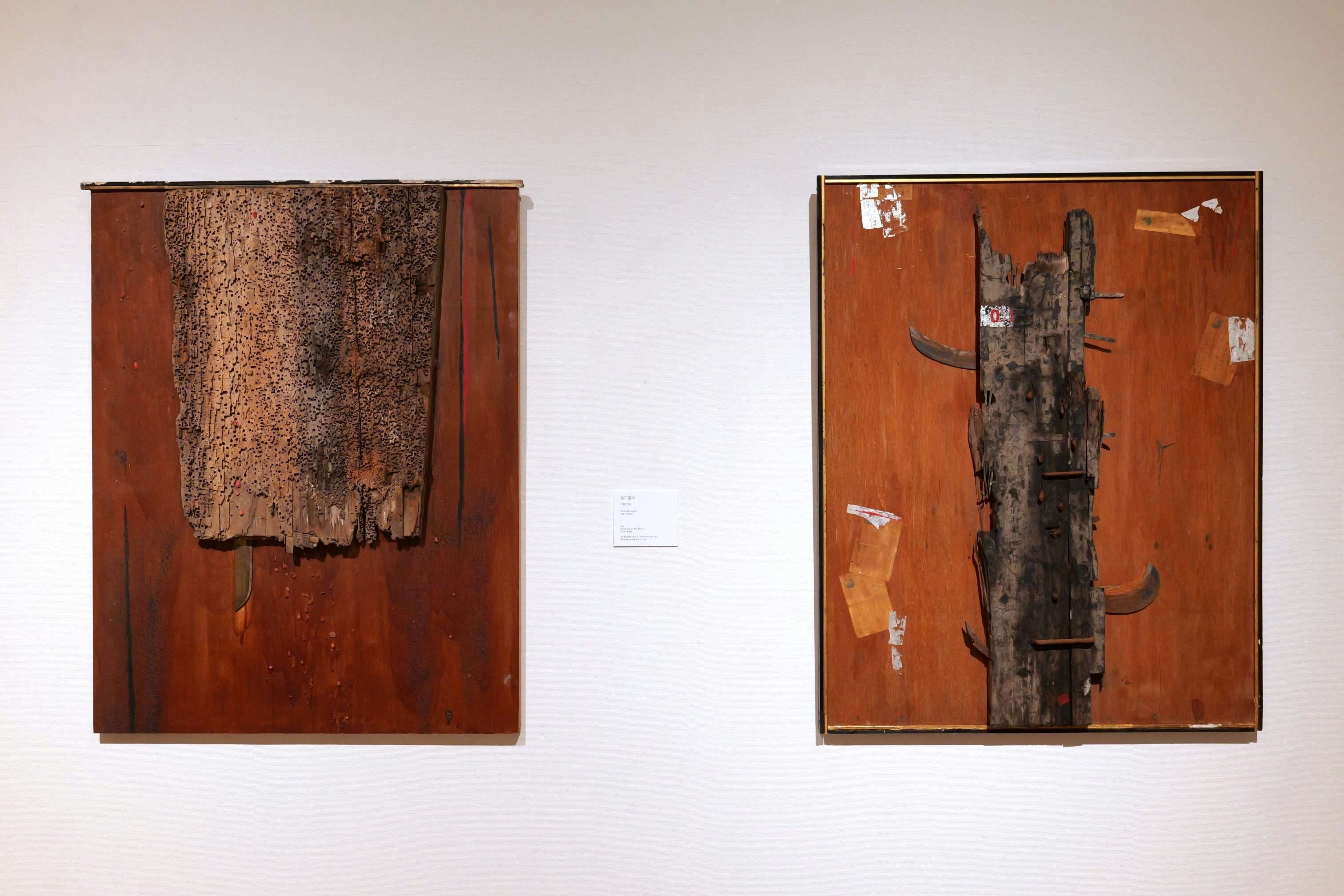 浜口の評価を決定づけたのが、実際の刃物を使用した絵画だ。浜口は第12回読売アンデパンダン展(1960)で刃物のシリーズを出展、評論家たちからも「反絵画」の実践として肯定的な評を受ける。会場で展示されている作品はサビが出てしまっているが、発表当初、キャンバスから突き出た刃物は輝いていたといい、第14回読売アンデパンダン展(1961)では同シリーズが危険であることを理由に出品を拒否されたこともうなづける。