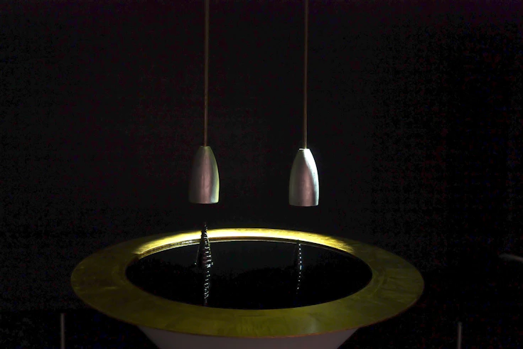 第2章「Zone 2|Art:ぐるぐるは美しい」では、「ぐるぐる」の根源を問うようなメディアアートが展示される。金属加工で人が関わることで駆動する作品をつくる東弘一郎の《自連車》(2026)は、自転車のホイールの回転運動の連鎖が回転運動の原初的な伝達を表現している。磁性流体を用いた作品で知られる児玉幸子の《モルフォタワー/二つの立てる渦》(2026)は、磁性を帯びた液体が渦巻き状になりながら立ち上がっていく。