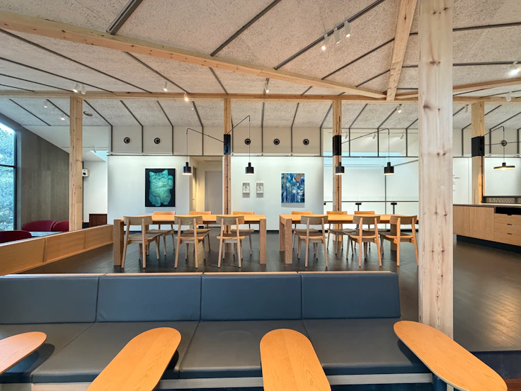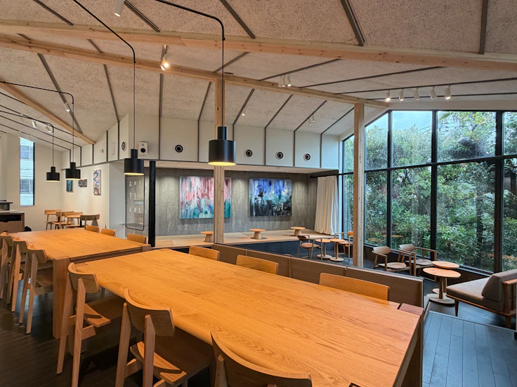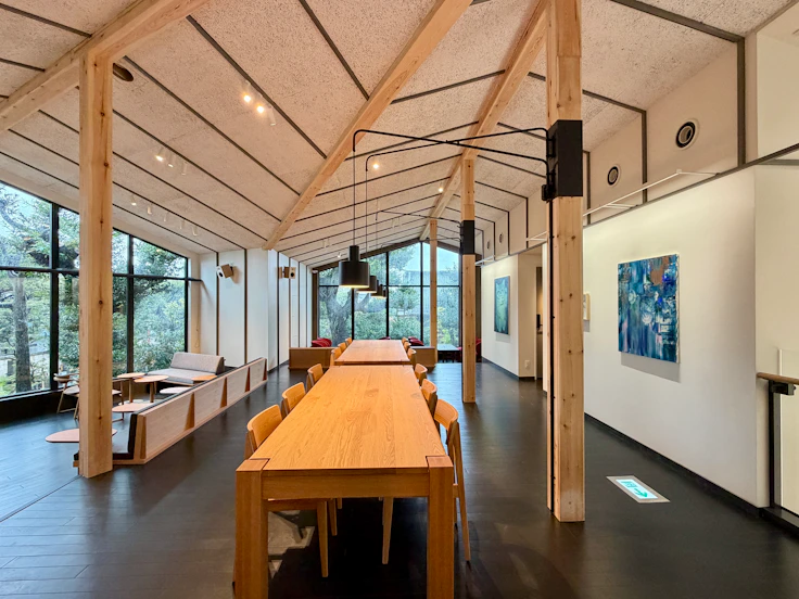 谷中は朝倉彫塑館やSCAI THE BATHHOUSEなど様々なアートスポットがあり、日常にアートが息づくまちだ。また足を伸ばせば多くの美術館が位置する上野エリアへとつながる。地域の文脈から生まれたというカフェ & アートギャラリーについて、同社は「本物の空間に本物のアートをお届けすることが、地域とお客様への誠意」と語る。アートギャラリーの名を冠する店舗は日本でも初めての取り組みであり、カフェを訪れた人がアートと自然に出会える場を目指したという。