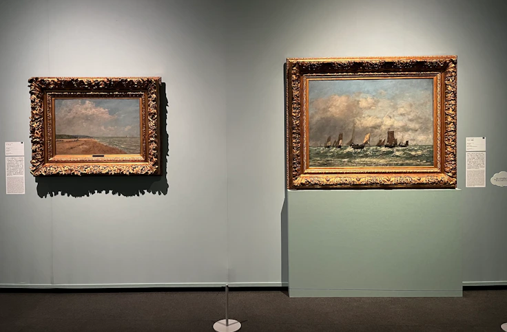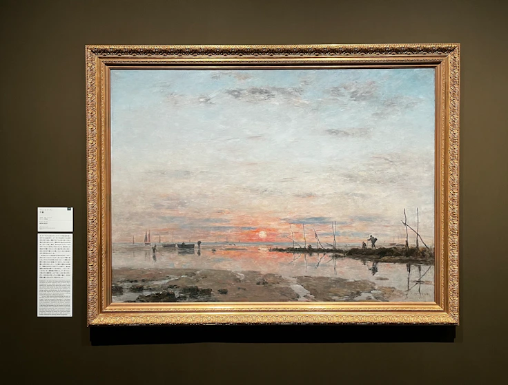 とくにブーダンが好んで描いたのは、小さな街の港だ。ノルマンディー地方ならではの変わりやすい天候が生み出す光や雲の動きを、船の帆や海面の揺らぎ、そしてそこに生きる人々の営みとともに描き出している。