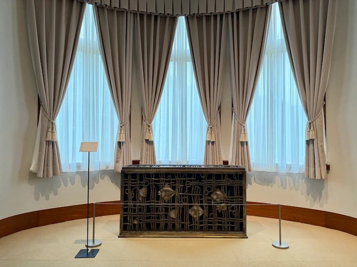 朝香宮邸には、各所に暖房機器であるラジエーターが設置されており、それらは金属製の飾り金物によって覆われている。現存するラジエーター用の飾り金物のうち、大食堂と若宮寝室、合の間、若宮居間にあるものは、魚と貝がモチーフだ。