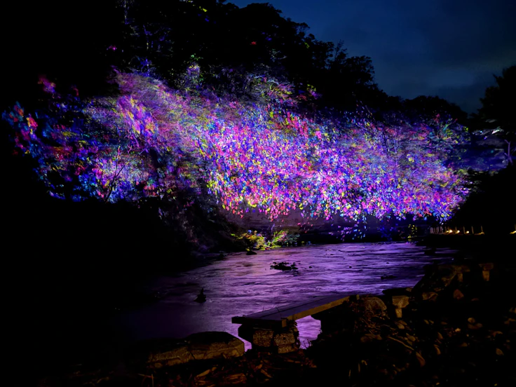 温泉郷としても知られる千葉・養老渓谷で、チームラボによる夜の野外展覧会「チームラボ 養老渓谷」が開幕した。会期は5月24日まで。