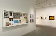 2階では、1960年代のコラージュ作品や、その当時に生まれた表現を用いた立体作品などが紹介されている。《エアメール・ステッカー》(1962/1992)は、郵便用ステッカーを画面全体に貼り巡らせた作品であり、大量消費社会におけるイメージの氾濫を想起させる。いっぽう、《マカロニィガール》(1999)では、マネキンにパスタを貼り付けるという手法を通じて、日常的な物質と作家の内的オブセッションが結びつく様相が示される。こうした反復的な行為は、当時のポップ・アートと形式的な共通点を持ちながらも、その出発点において本質的に異なる。