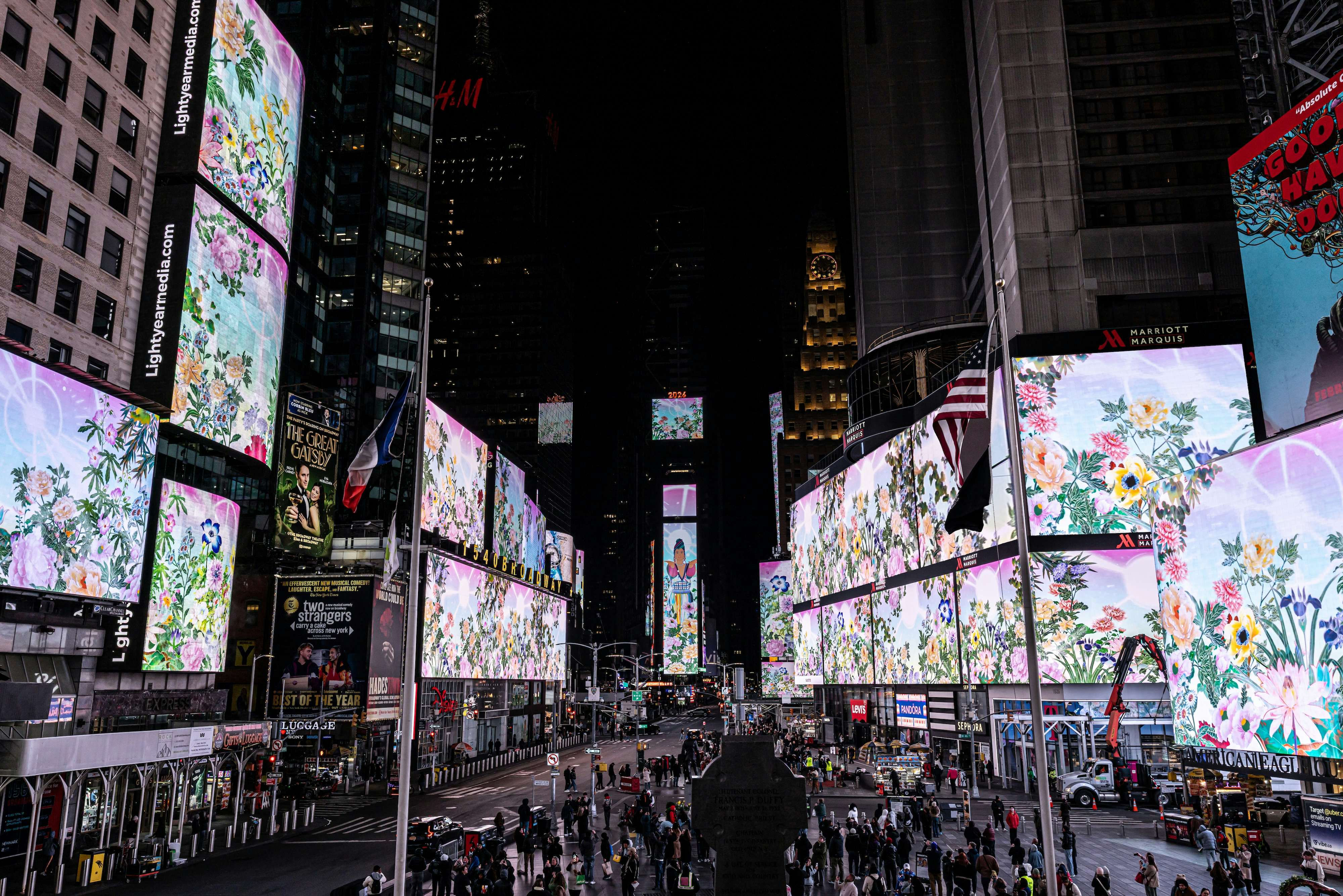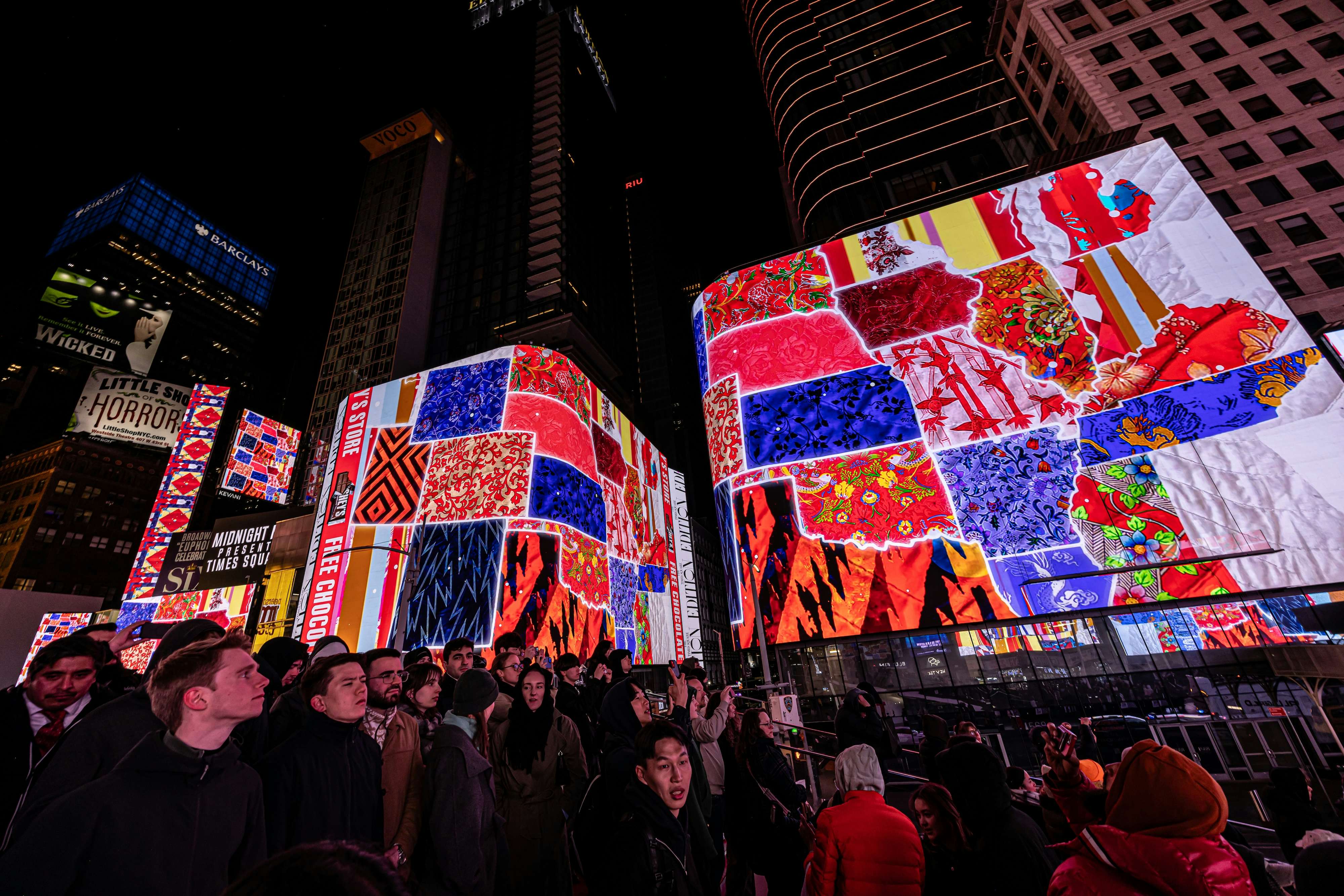 「タイムズスクエアは、アメリカの経済性や国家の富の強さを可視化している象徴的な場所です。そうした場で作品を発表することはやりがいがあるいっぽうで、非常に慎重にアプローチしなければならないと感じました。ここは美術館のように文脈を与えてくれる空間ではなく、都市そのものです。だからこそ、この場所でいかに作品を成立させ、メッセージを伝えるかが重要でした」。