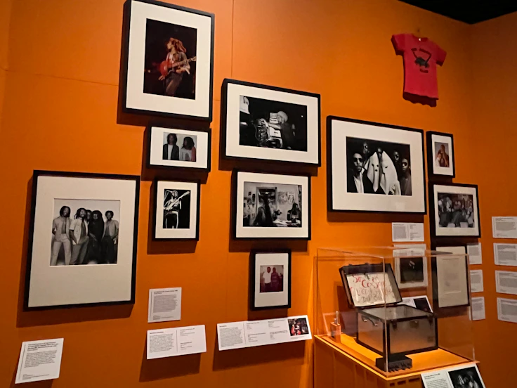 こけら落としの特別展は「ザ・ミュージック・イズ・ブラック:ア・ブリティッシュ・ストーリー」だ。冒頭ではイギリスの奴隷貿易について触れながら、1900年から現在までの125年間に、黒人音楽がいかに英国文化を彩り、かたちづくられていったかを200点以上の展示品々を通して探る。ポスターや写真とともに、時代とジャンルごとのファッションも数多く展示されているのがV&Aらしい。この規模で黒人音楽を扱う展覧会はイギリスでは初めてだという。入場の際にはヘッドフォンが貸し出され、展示に合わせた音響サポートにより臨場感あふれる鑑賞ができる。