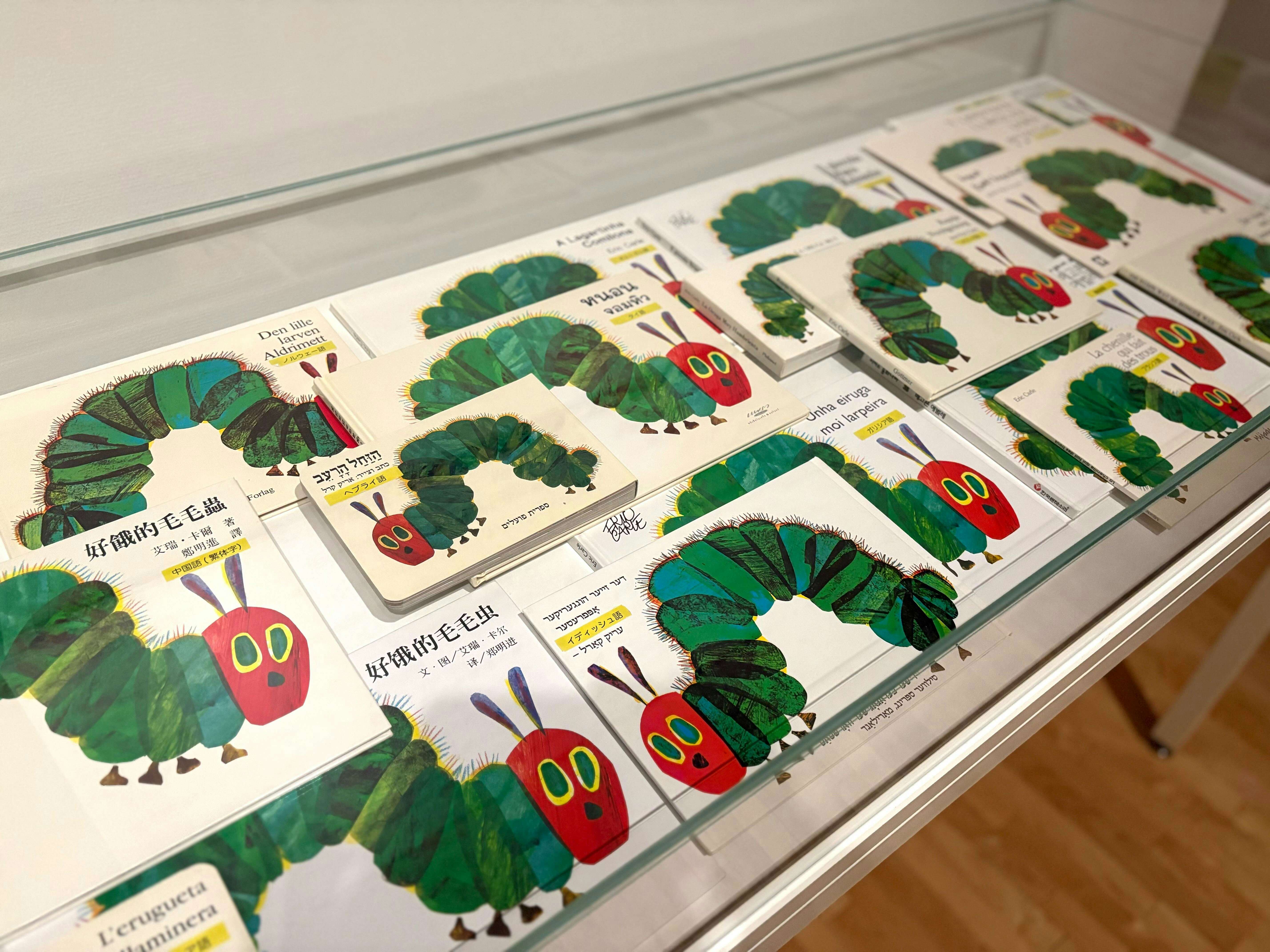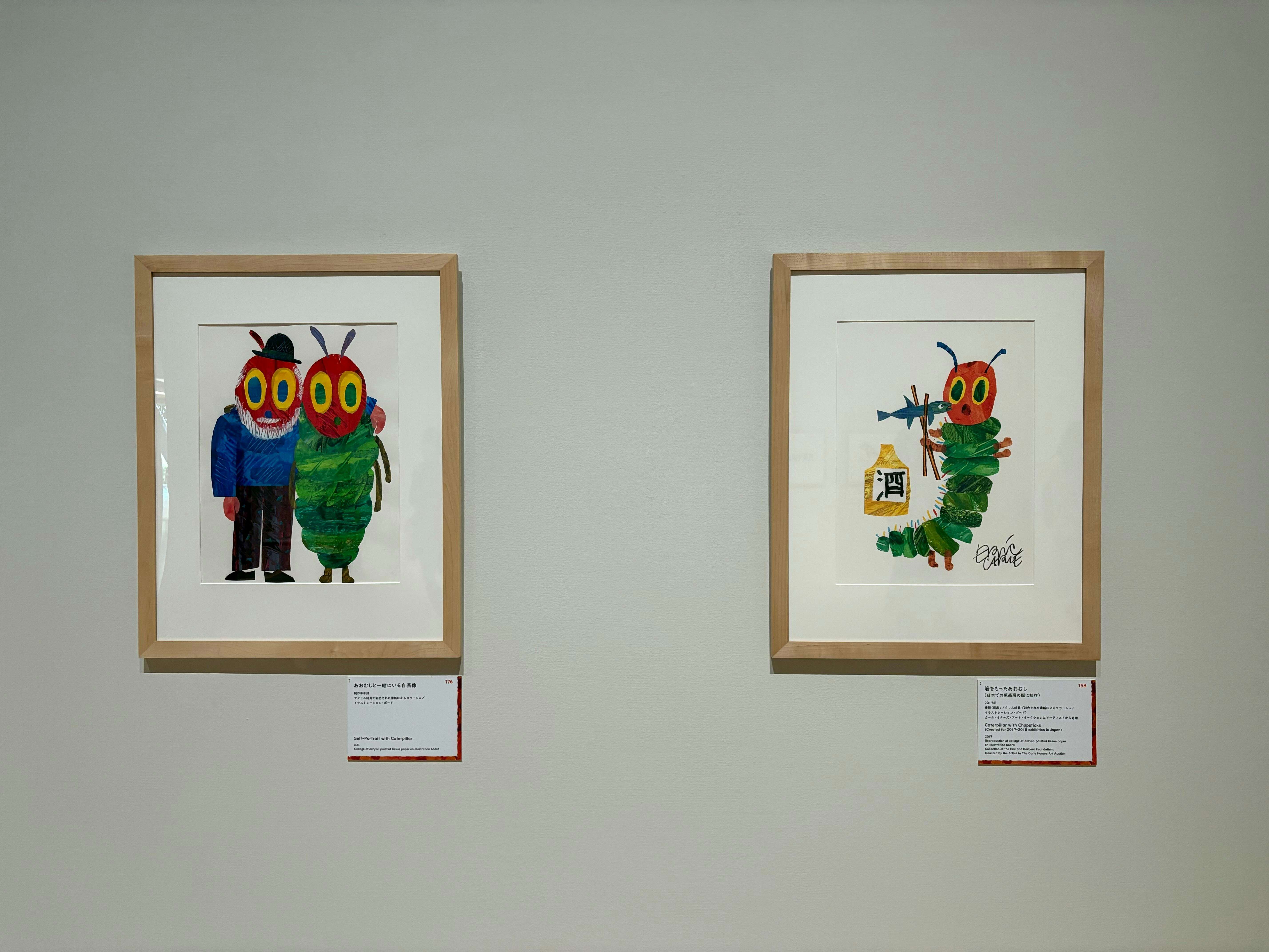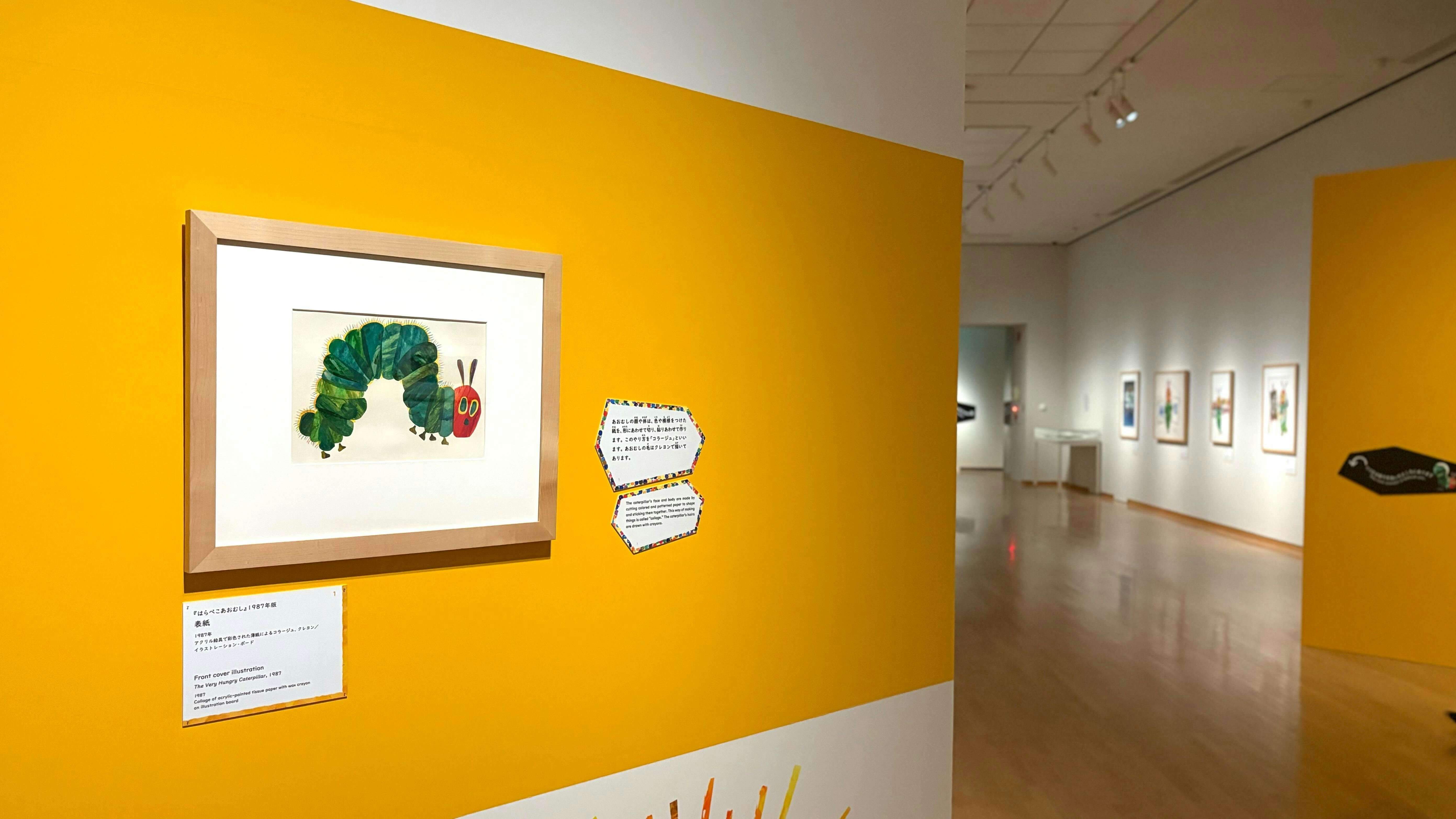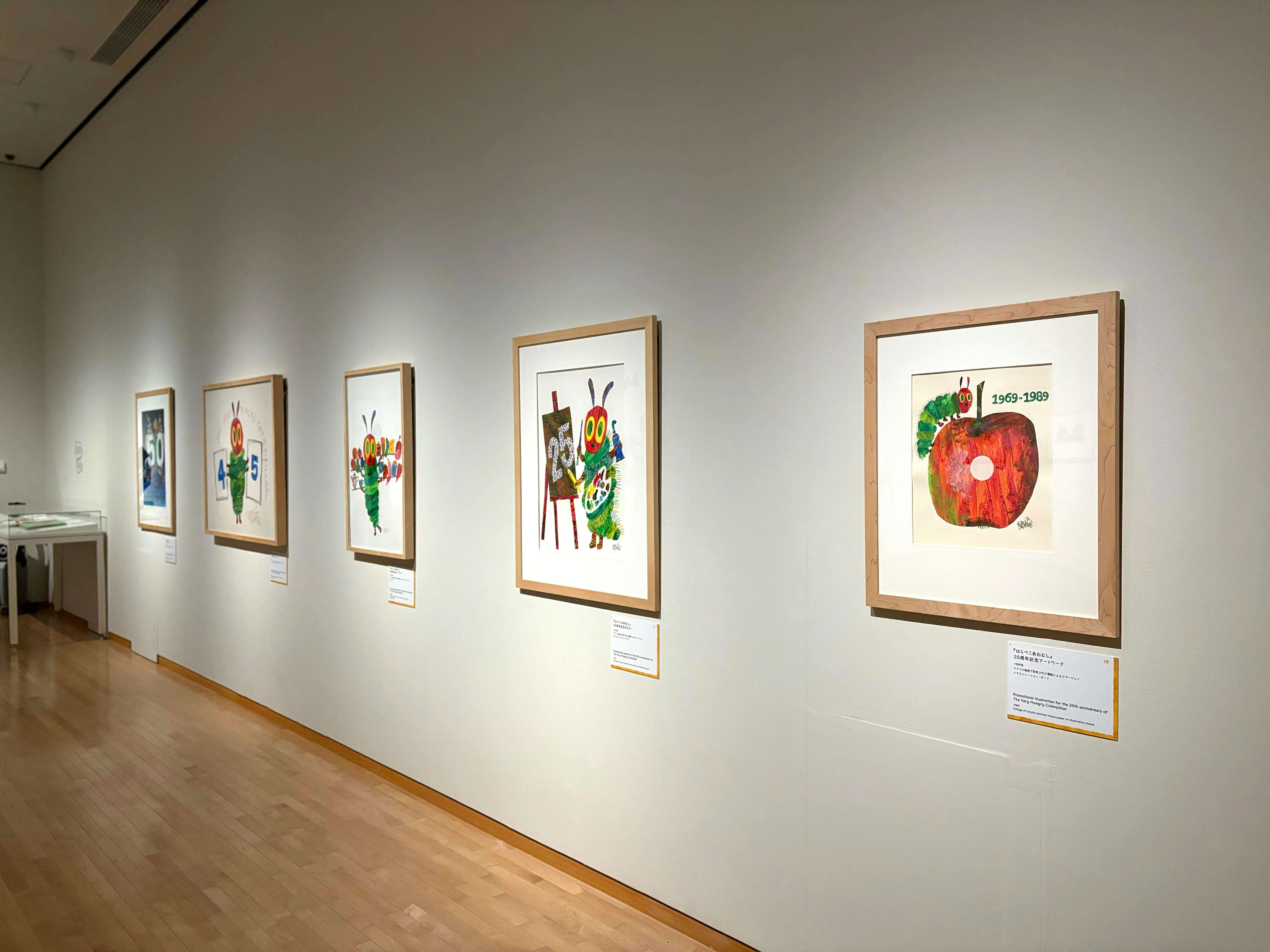本展は『はらぺこあおむし』(1969)の日本語版50周年を記念し、米国マサチューセッツ州のエリック・カール絵本美術館との共同企画により開催されたもの。同作をはじめとした27冊の絵本原画に加え、デザイナー時代の仕事、構想段階の「ダミーブック」、コラージュ用の素材など約180点が展示されている。