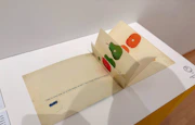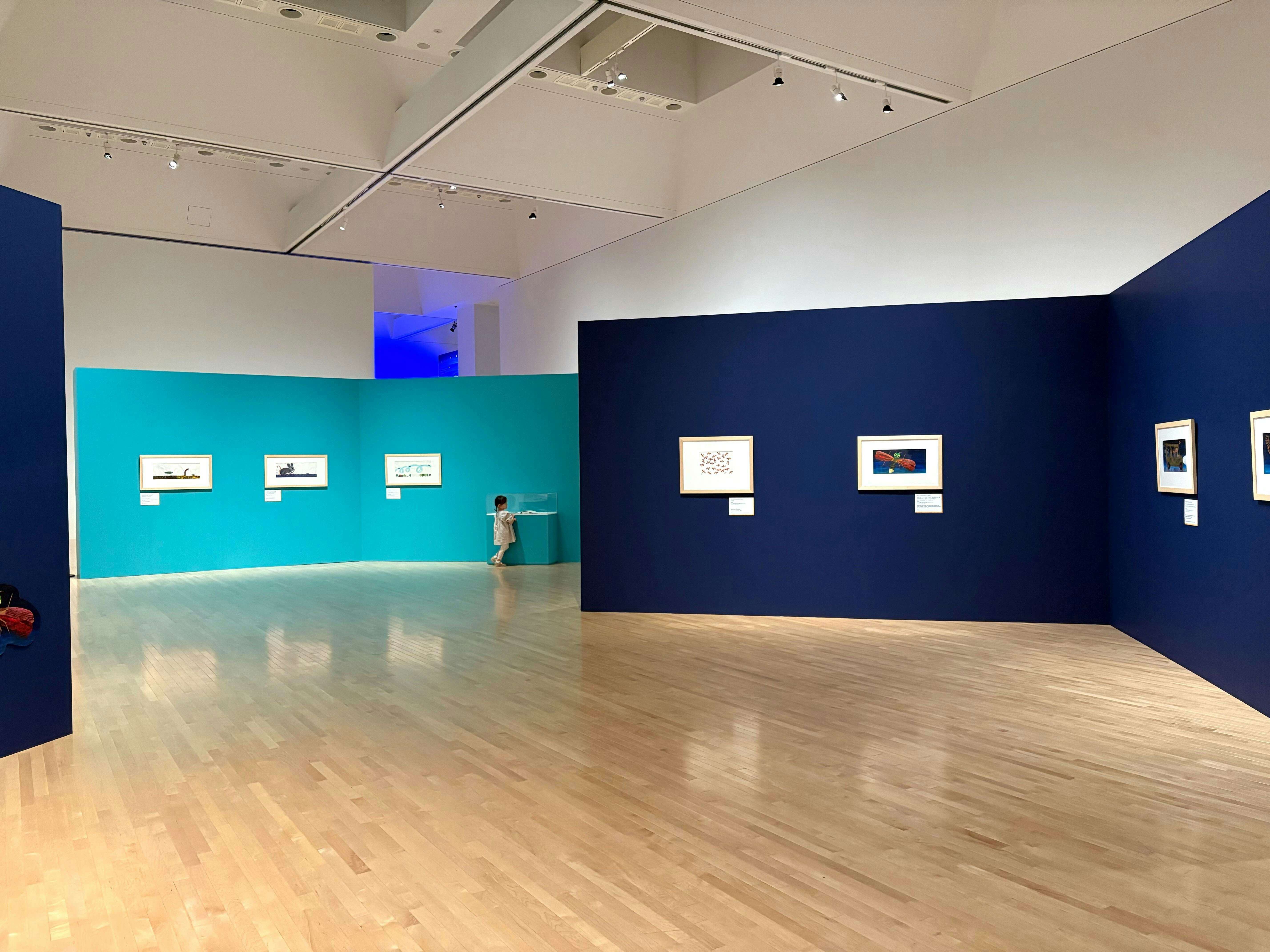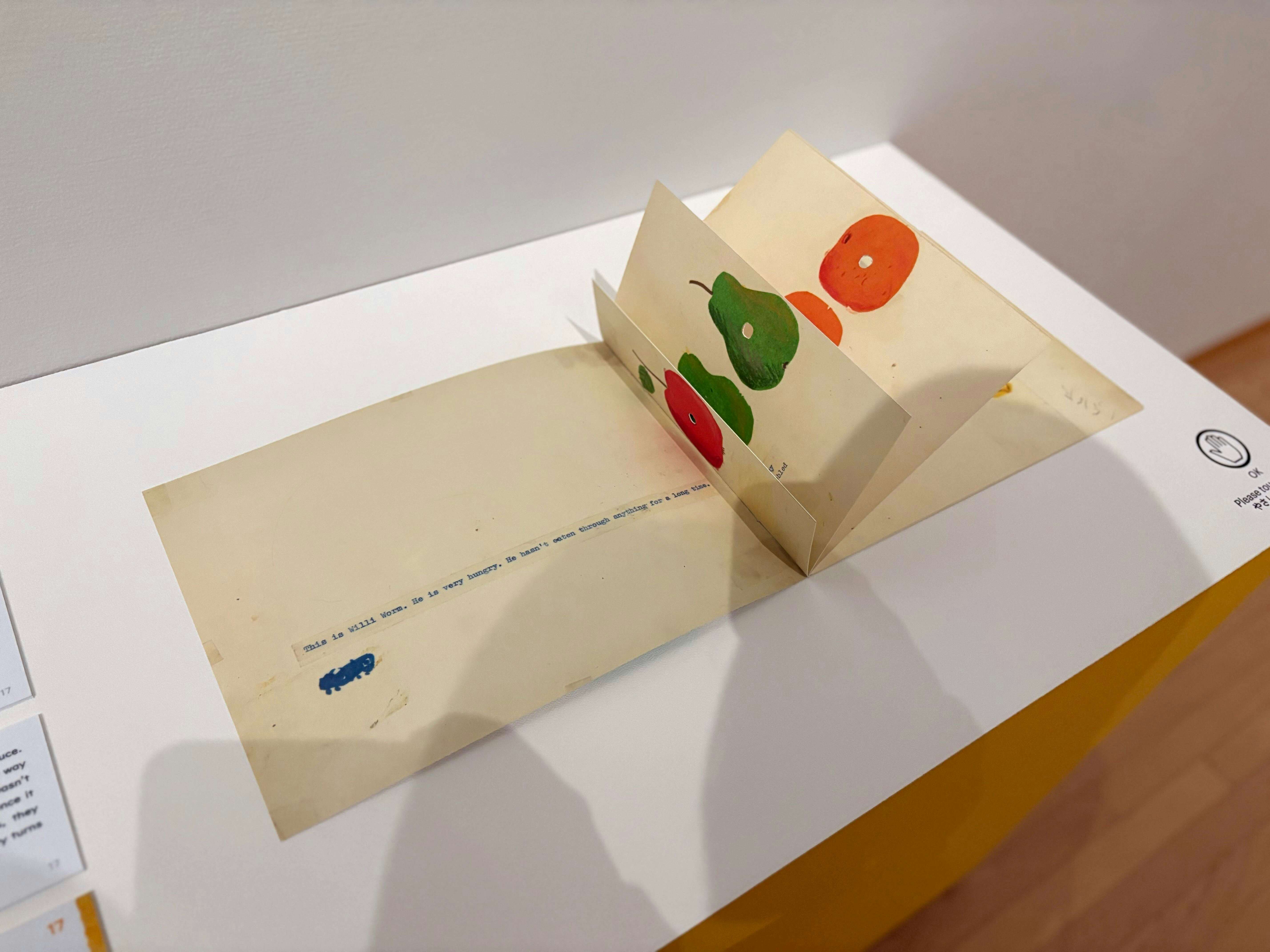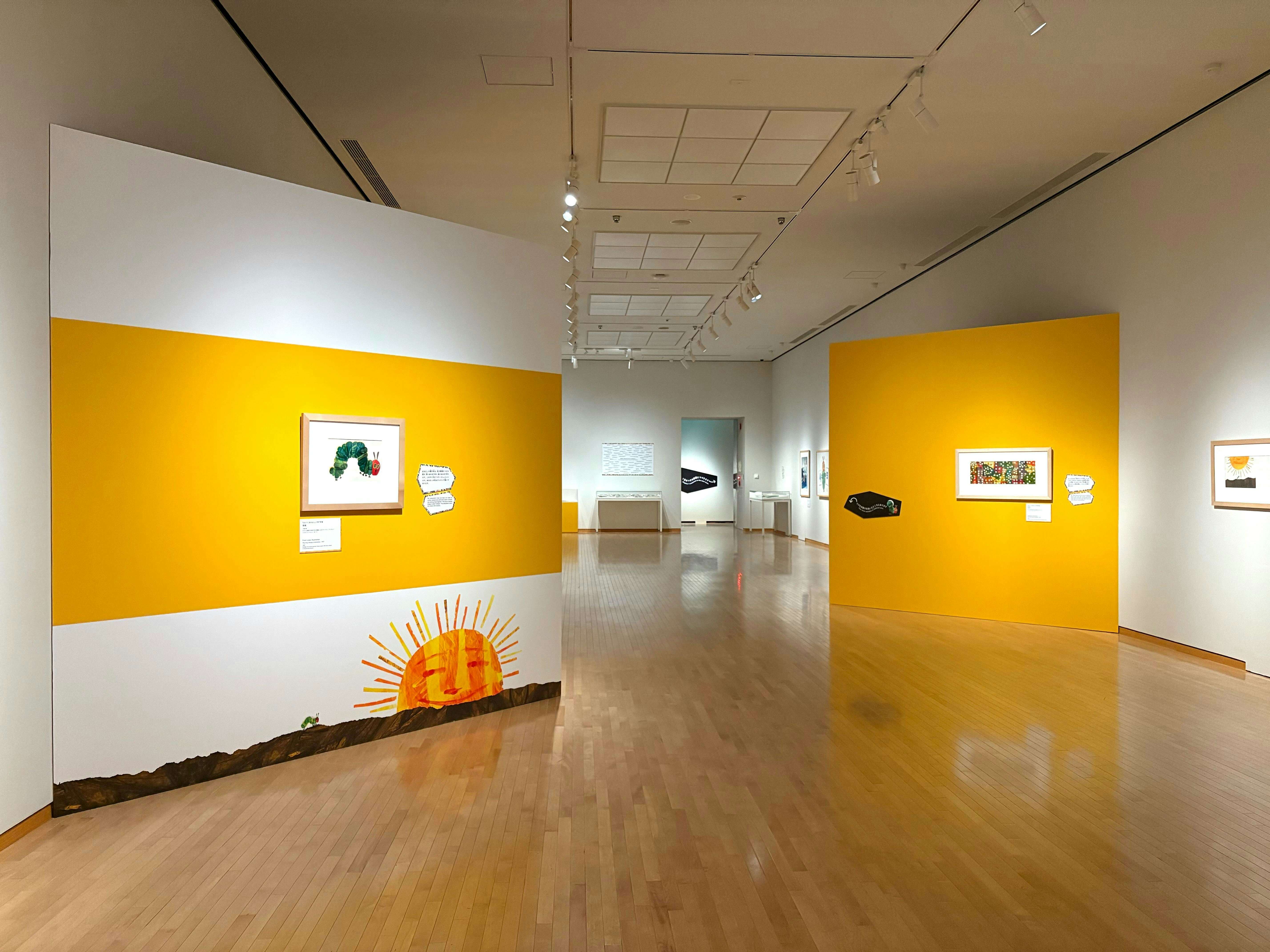 本展は『はらぺこあおむし』(1969)の日本語版50周年を記念し、米国マサチューセッツ州のエリック・カール絵本美術館との共同企画により開催されたもの。同作をはじめとした27冊の絵本原画に加え、デザイナー時代の仕事、構想段階の「ダミーブック」、コラージュ用の素材など約180点が展示されている。
