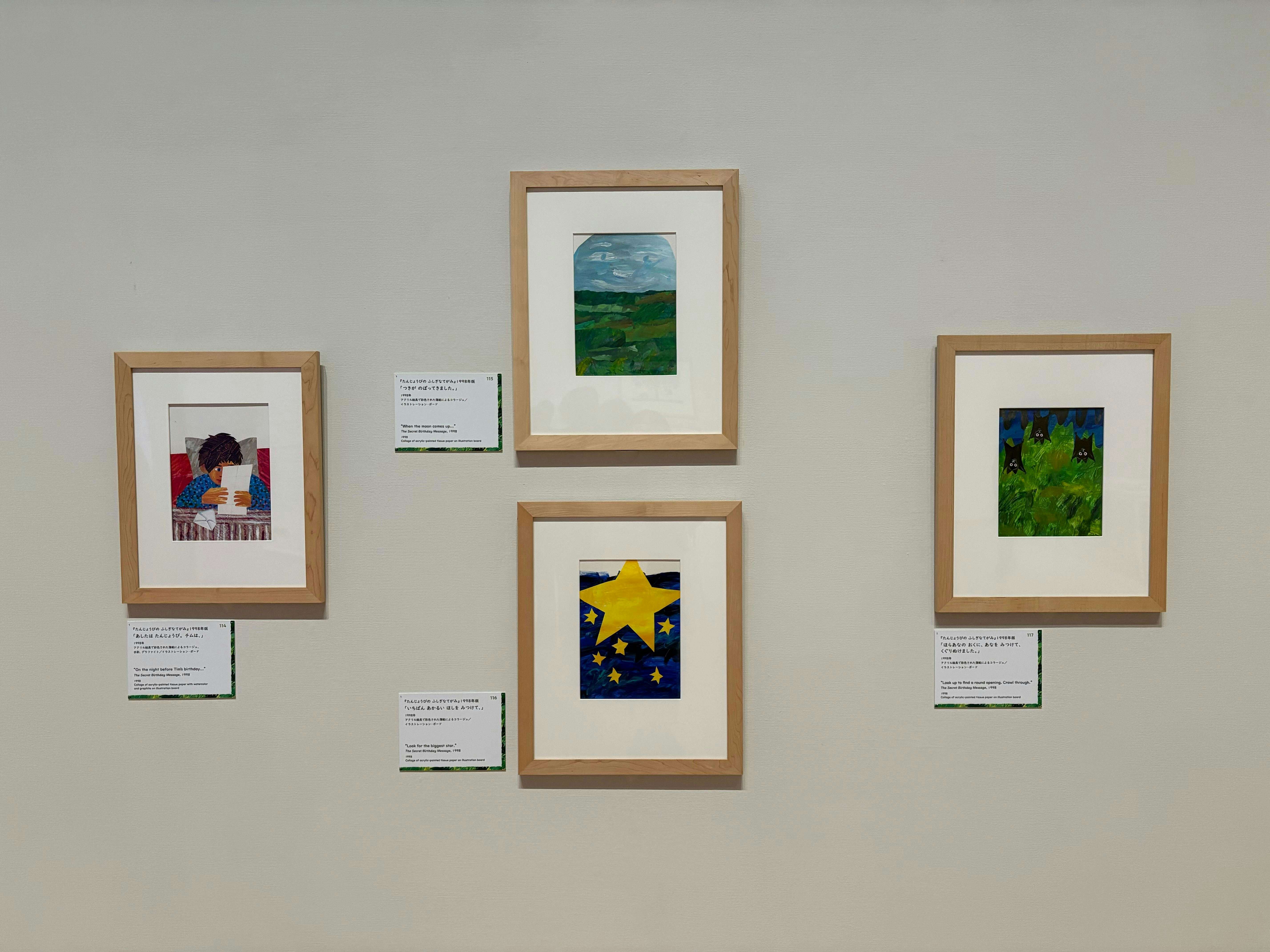 会場に並ぶ「ダミーブック」も重要な見どころのひとつ。エリック・カールは物語の流れや構成を練る際、絵コンテの役割を果たす手製の見本をつくる。完成した絵本とは異なるイメージが残されていることも多く、創作のプロセスを辿ることができる。本展では、日本での開催では最多となる12点のダミーブックが展示されている。また、70以上の言語に翻訳された各国版の紹介からは、本作が世界中の子供たちに愛されていることがうかがえる。本章ではあわせて、虫を主人公とした『くもさん おへんじ どうしたの』や『だんまり こおろぎ』などのシリーズ作品も展示されている。