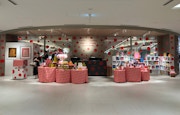 この吹き抜け空間では森美術館監修のもと、草間彌生のバルーンインスタレーションが出迎えてくれる。草間のアイコンでもあるカボチャをかたどった《南瓜》は、GINZA SIXのために草間が制作したもので、3種類14個の巨大カボチャがまるでシャンデリアのように吊り下げられている。