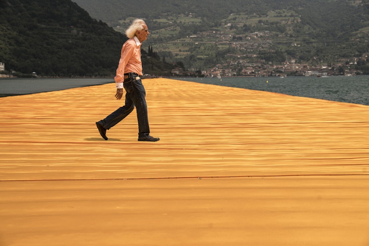 本展をディレクションしたのは、建築やアートの分野でライターとして活動する青野尚子。きっかけは「2016年にイタリアのイセオ湖で行われたクリストとジャンヌ=クロードによる《フローティング・ピアーズ》だった」という。同作は、これまで主に布によって景観を買える作品を多数手がけてきたクリストとジャンヌ=クロードが、湖面に3キロメートルにわたる黄色の布を浮かべたもので、人々が実際にその上を歩くことができることで大きな注目を集めた。