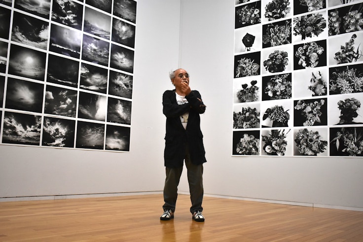 続く「空百景」「花百景」では、2つの壁面にそれぞれ100点ずつ、空と花を写したモノクローム写真が並ぶ。「空と花に目がいくことは老いていくことの特典。やっぱり私も老けていっているわけ。この境地に行かされちゃう。でも私はまだそっちに行きたくない」。