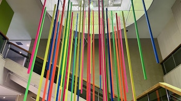 国立新美術館のパブリックスペースを使った企画シリーズ「NACT View」。6月10日まで現代美術家・彫刻家の和田礼治郎によるインスタレーション《FORBIDDEN FRUIT》(2024)が展示されている。その制作意図について作家の言葉とともに紹介する。