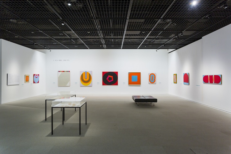 ほどなく阿部は、海外の先端芸術の実情を知るに至り、戦後、人間を描くことへの強い関心を示し続けていたのに、絵の中に具体的な表象を見るだけで、過去の遺物と感じるようになったのだろうか、具象表現を完全に放棄し、描かれているものではなく、画面の質感〜マティエールを重く見るようになる。60年代には、彼の国際的な評価を決定づけたエンコスティック(蜜蝋を焼き付ける画法)によるアンフォルメル絵画をものにし、のちにアクリル絵具との出会いを経て、晩年のハードエッジな幾何学的抽象の色彩鮮やかな展開に至る。