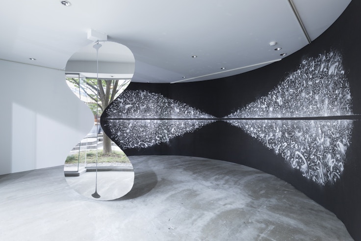 いっぽうで、ステンレスでつくられた同じ形態を垂直に回転した平板なオブジェクトは、静かに回転しながら周囲の風景を内部へと取り込んでいく。惑星の運動を想起させる回転や、移り変わる風景を体験させることは、鈴木がドローイングを円環的な広がりとしてとらえていることを暗示する。目新しいアイディアをセンセーショナルな形式で次々と提示するのではなく、過去の実践を咀嚼し引き受けることで着実に新たな挑戦を重ねる鈴木のドローイングは、まさに彼の生きる態度の現れである。