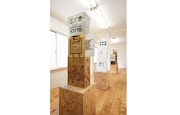 五線譜に月を写し出す野村仁や、潮の干満をとらえる朝海陽子の、自然現象に有意味なリズムを見出す写真は、この港まちの電線越しの空や護岸からの景色へと鑑賞者を誘う。騒々しいが漏れるパチンコ店の向かいに、他人のヘッドフォンの音漏れに合わせて踊る小山友也のパフォーマンスの映像。長屋建ての会場に、冨井大裕の紙袋を積み上げた彫刻。街路樹のケヤキに集う騒々しいスズメの群れや、中央分離帯の立派なソテツに気を取られつつ眺める、ユーアン・マクドナルドの小気味良い映像。旧・名古屋税関港寮では、法貴信也がベランダ経由で複数の部屋を縫うようにつなぎ、本来鑑賞対象ではない裏面に焦点を当てた豊嶋康子のパネル作品や、キャラクター不在の野比家(ドラえもん)のフッテージからなる鈴木光の映像が、会場の物理的な構造への想像を喚起する。