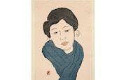 平塚にとって版画とは、その空間のみならず、使用される技法や材料すべてが一体化し、統合される究極のシンプリシティを体現すべきものだった。曰く、版画には「複雑よりも単純へ単純へと伸びていく詩情がある(*2)」。例えば彼は大正12年に制作した《肩かけの女》について、以下のように語る。「この作品のごとく、紙、板、刃物、刷毛、バレン、顔料、それらが、作者の境地と歩調を合わせ、青春謳歌の行進曲を奏でている例は皆無である(*3)」。